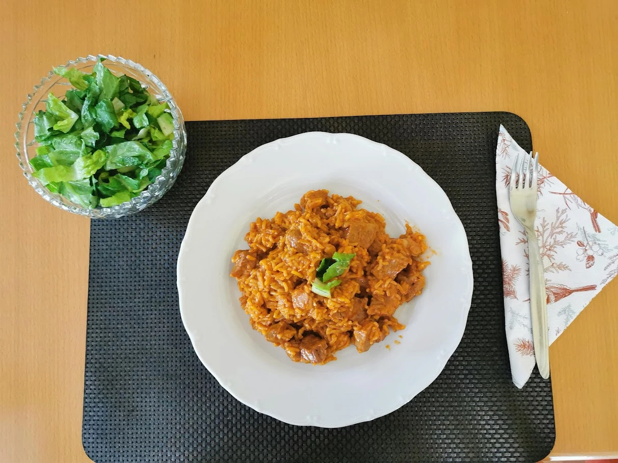 • Es gab reis, gebratenen kabeljau und zander (in beiden tk tüten war nur noch je 1 stück), senfsauce, bunten tomatensalat. Und eis :)