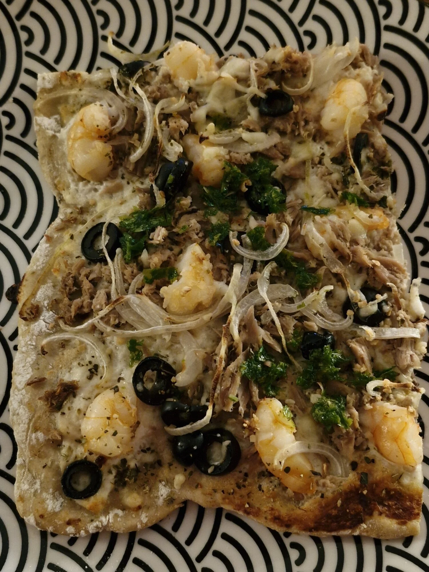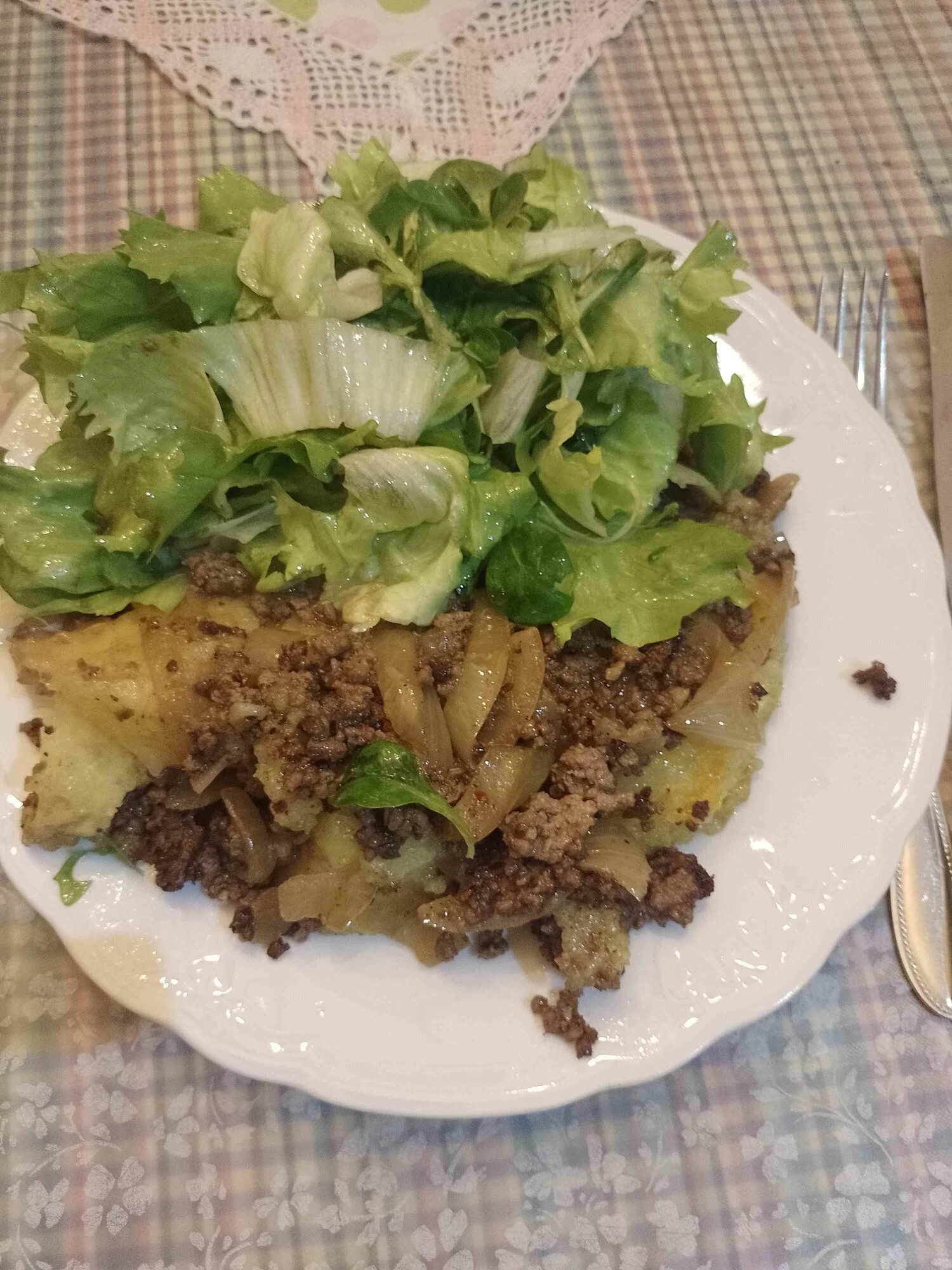 Ja ganz schneller Teig nur mit Mehl, Wasser, Salz und Öl...und mit selbsgemachten Strudelteig nehme ich an..![]()