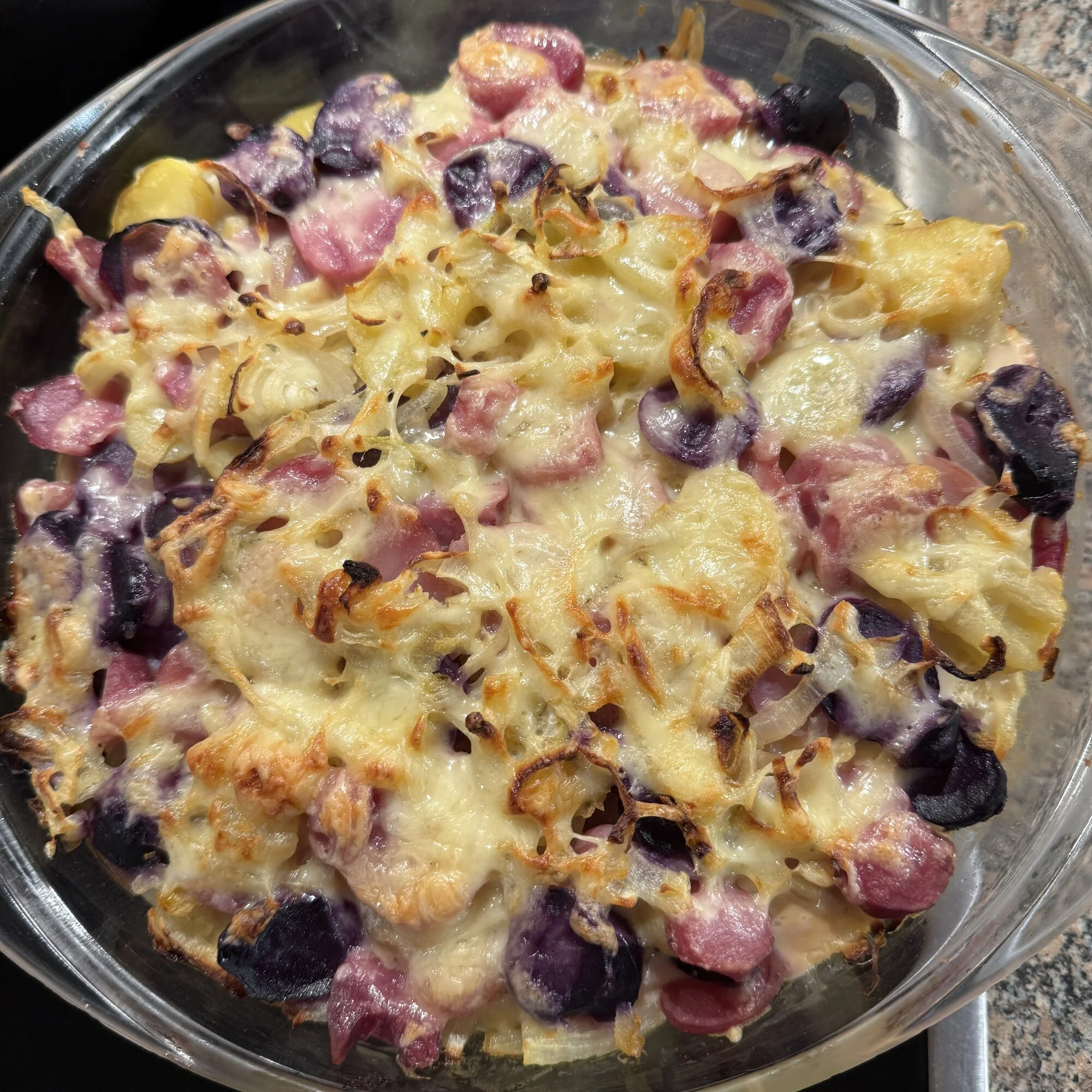 Es waren 400g Schwand, 3 Eier, 100g Parmesan (in der Masse, 50g als Abschluss noch oben drauf gestreut), 750g Spargel (bereits geschält und unten abgeschnitten)
