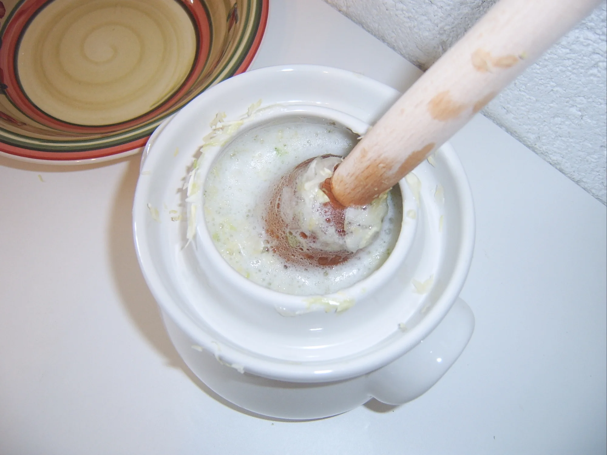 Sauerkraut angesetzt im ganz ganz kleinem Rahmen, der 1 Liter Gärtopf ist so putzig, klein aber fein.