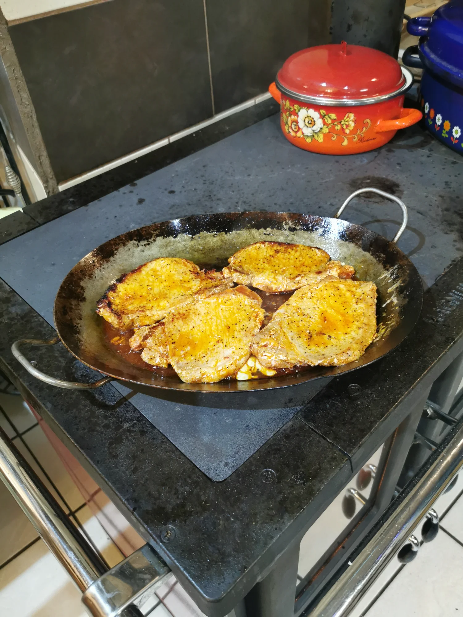 Heute gibt es Bratkartoffeln (aus frischen Kartoffeln mit Zwiebeln und Knobi). Dazu "adeliges" geschnetzeltes Schweinefilet in Senf-Sahne-Sauce. Ist aber auch lecker.