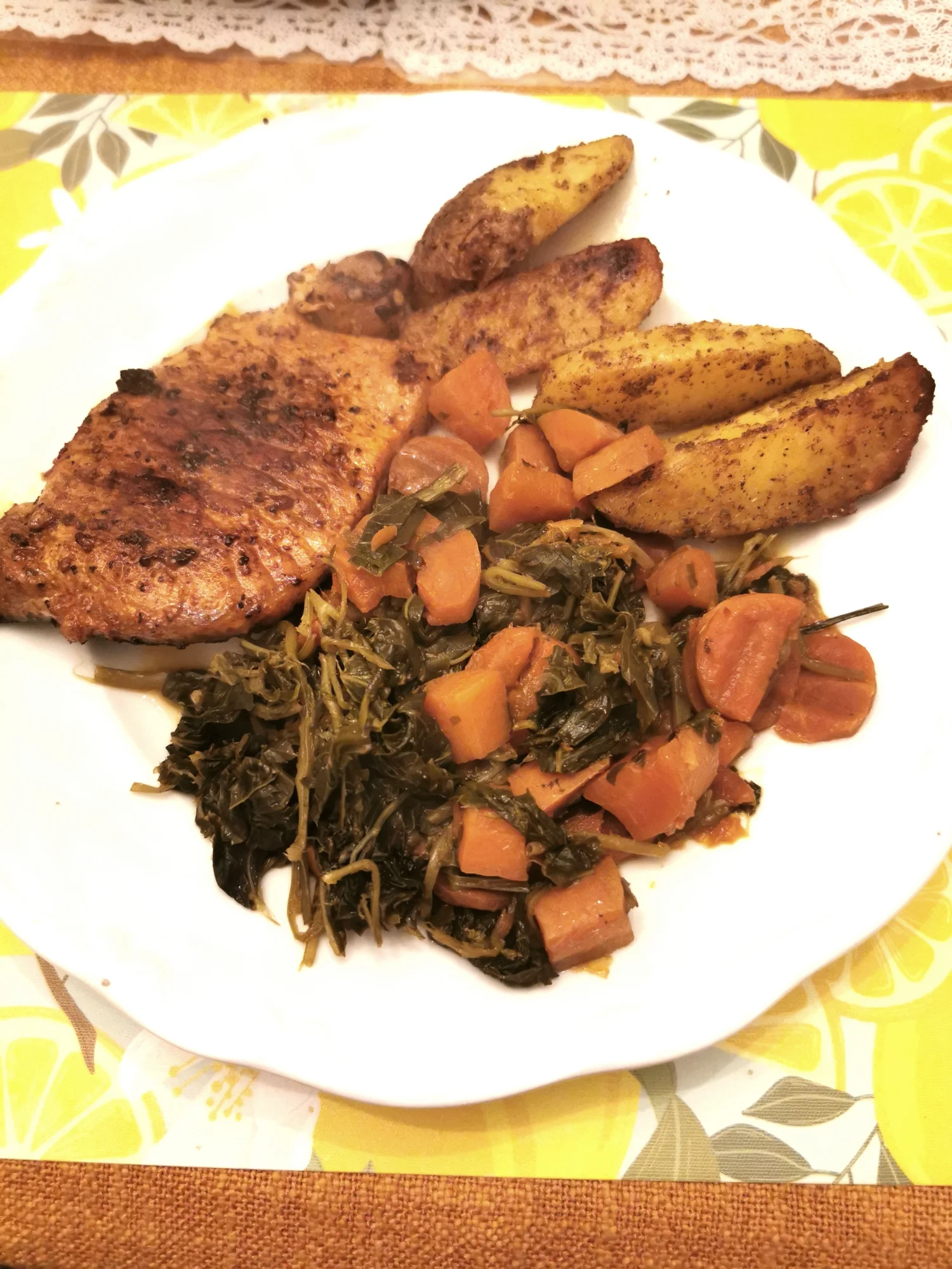 Gestern gab es Karotten Girsch Gemüse aus dem Vorratskeller , Steaks und Backkartoffeln.