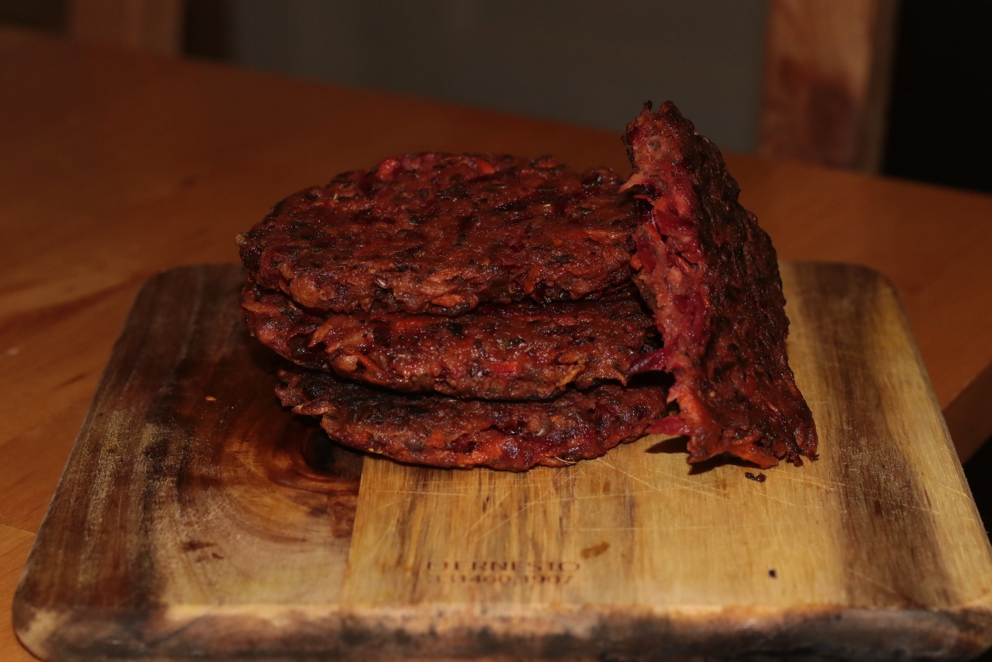 Und darum hab ich mir Rote Beete/Pastinaken/Möhren-Amaranth-Burgertürme gebaut.
