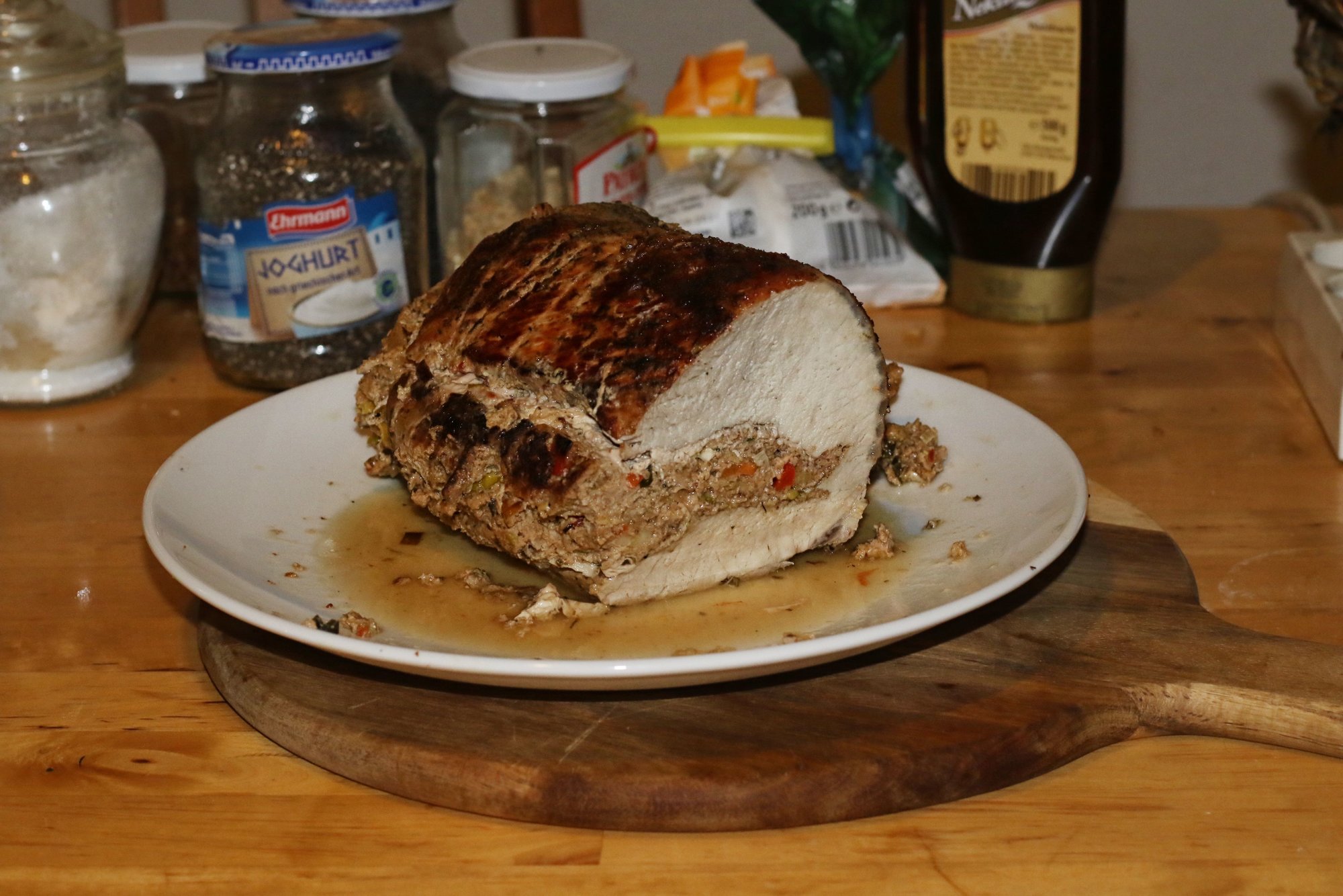 Naja, die Füllung zu dick und das Fleisch auch. Heißt ja eigentlich Rollbraten und nicht Faltbraten...