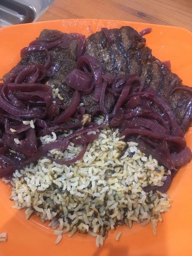 Heute mache ich Rinderleber in Rotwein Zwiebeln mit Vollkornreis