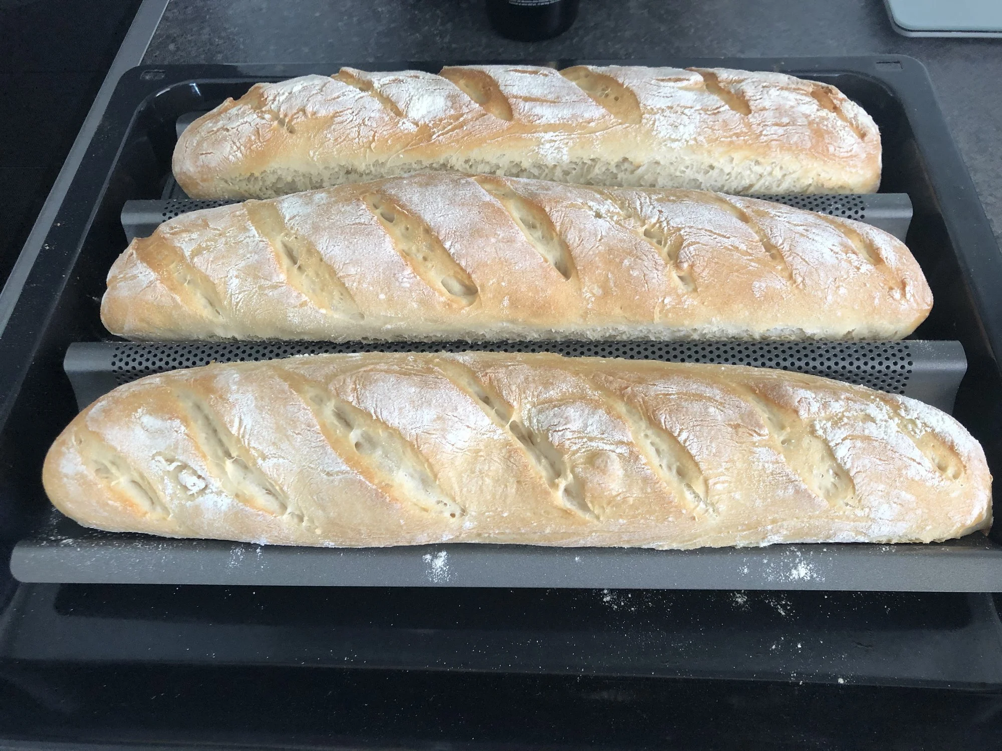 Wir haben den großen Vorteil an der Grenze zu Baguettistan zu wohnen. Das Backen erübrigt sich da. Die Dinger kosten in Frankreich auch praktisch nix.