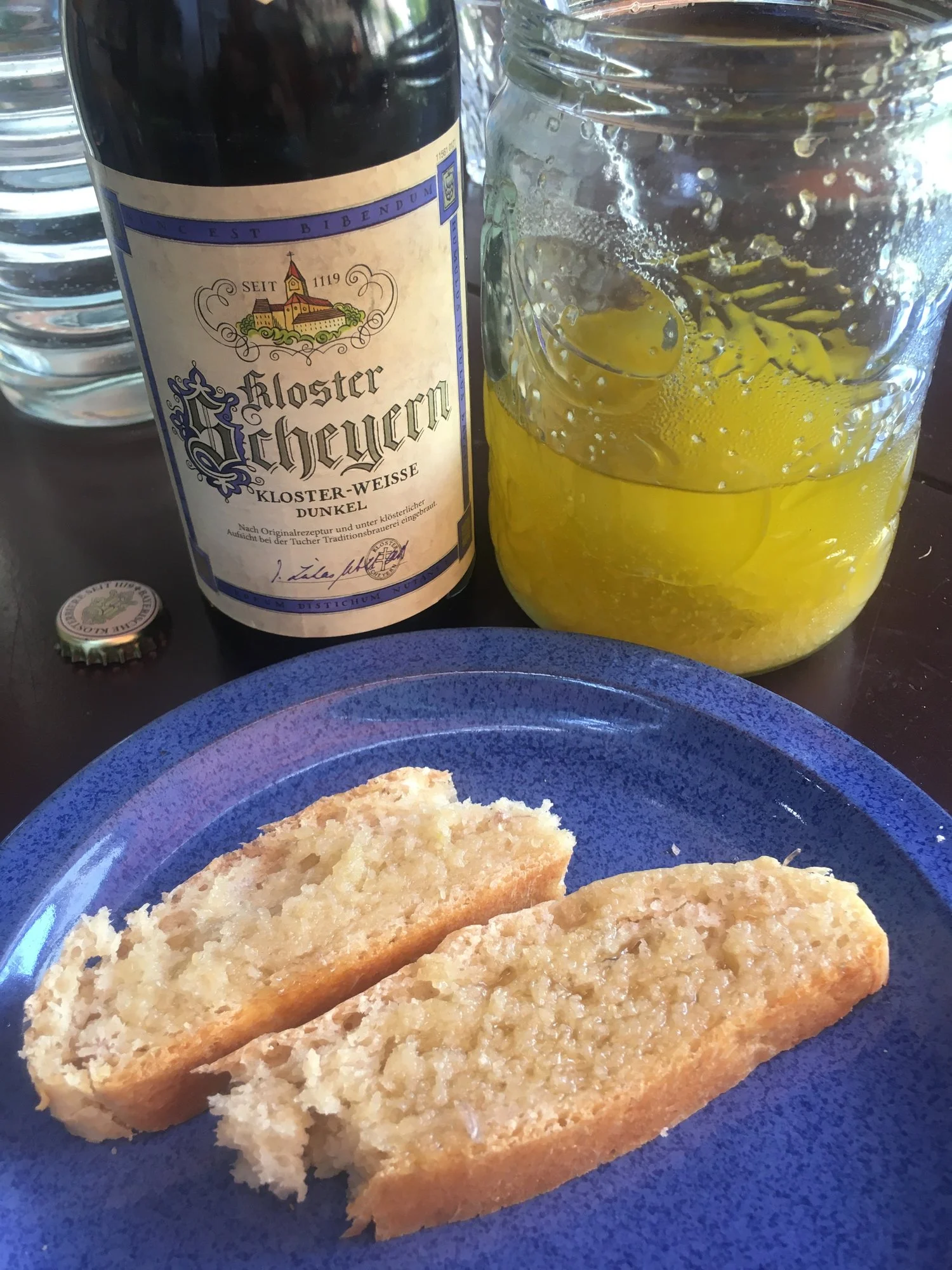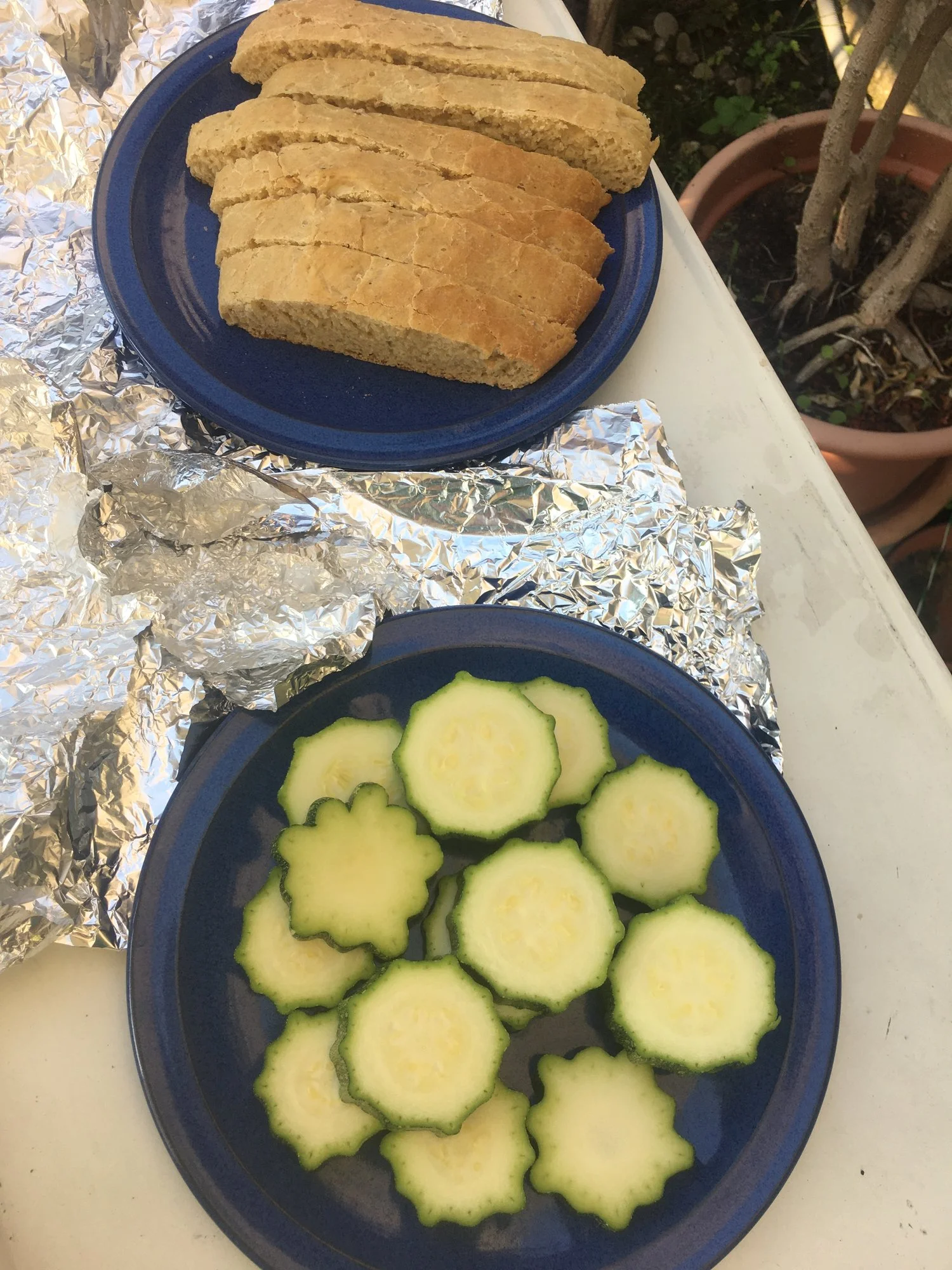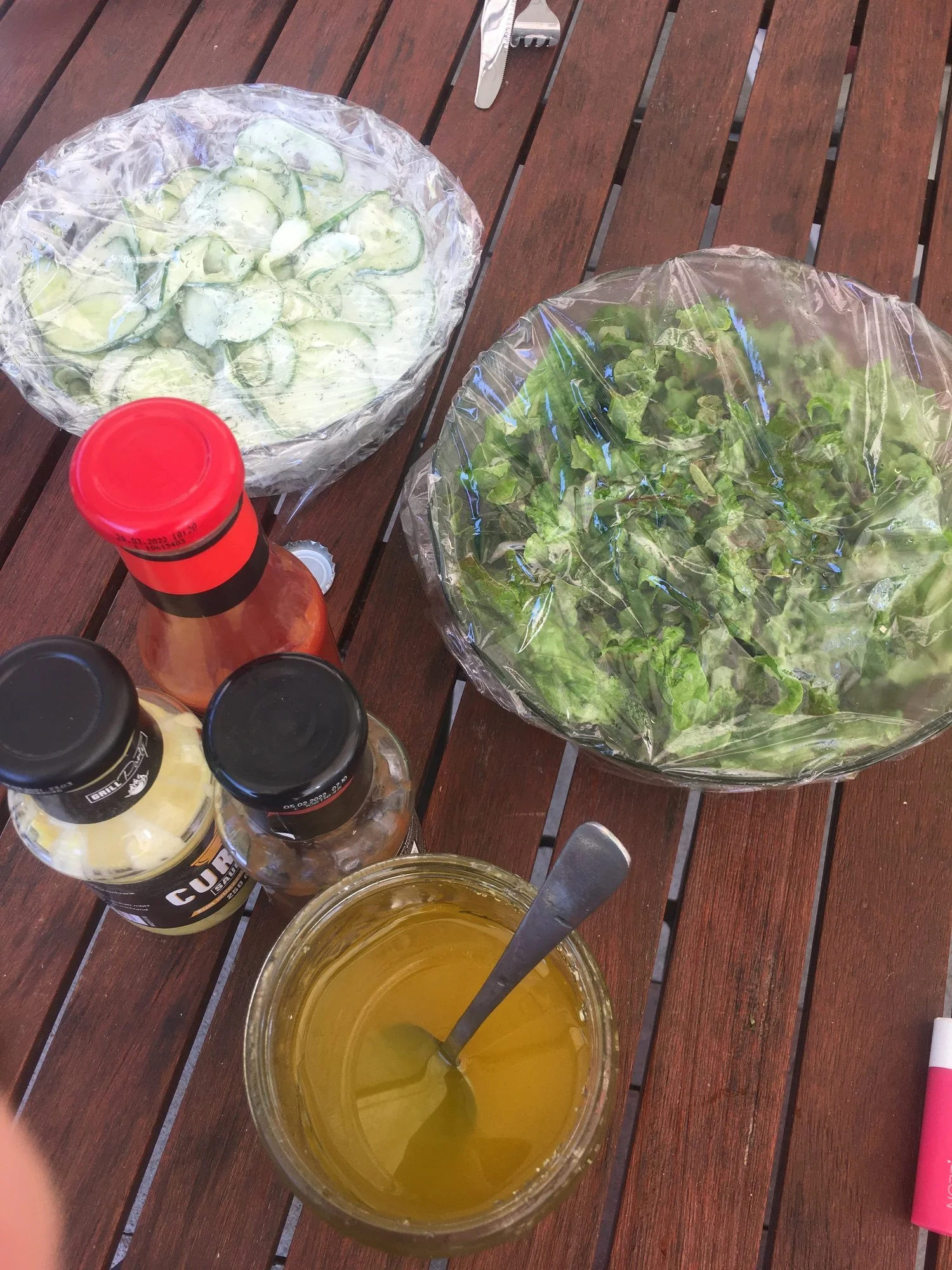 dazu Knobiöl auf das gegrillte baguette ,Gurkensalat und grüner Salat, ist ja alles jetzt im Walipini und Gewächshaus;)