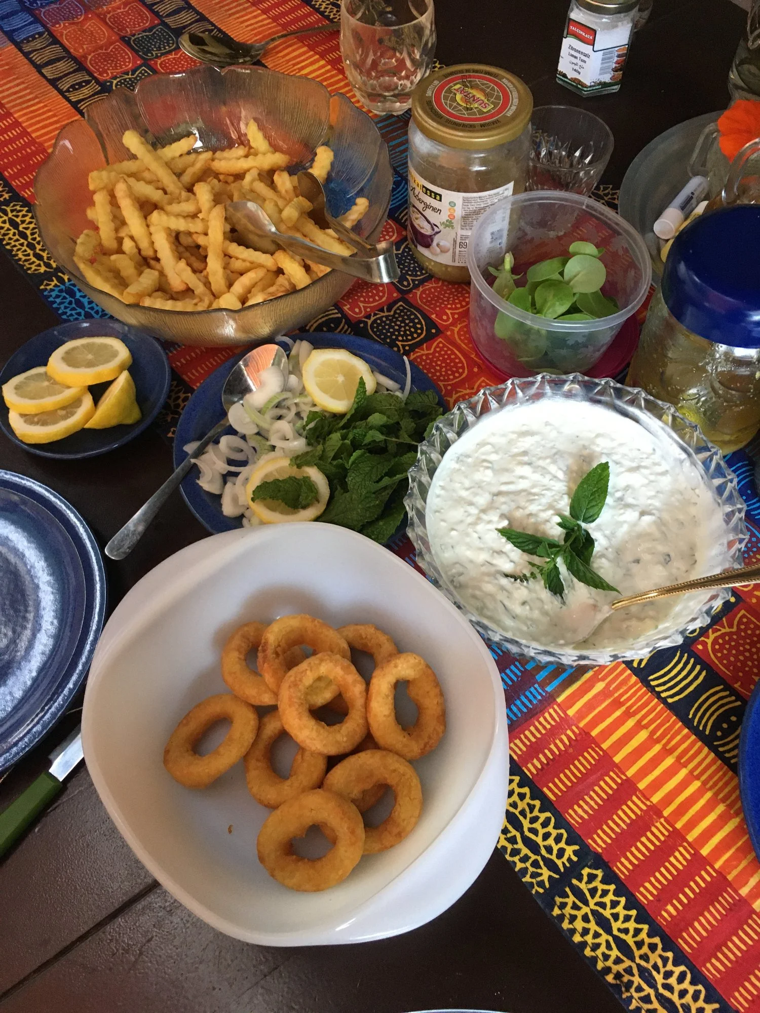 Das waren dann die anderen leckeren sachenOh heute mal wieder schön Kalamares, Pommes und Knobi- Minze dip
