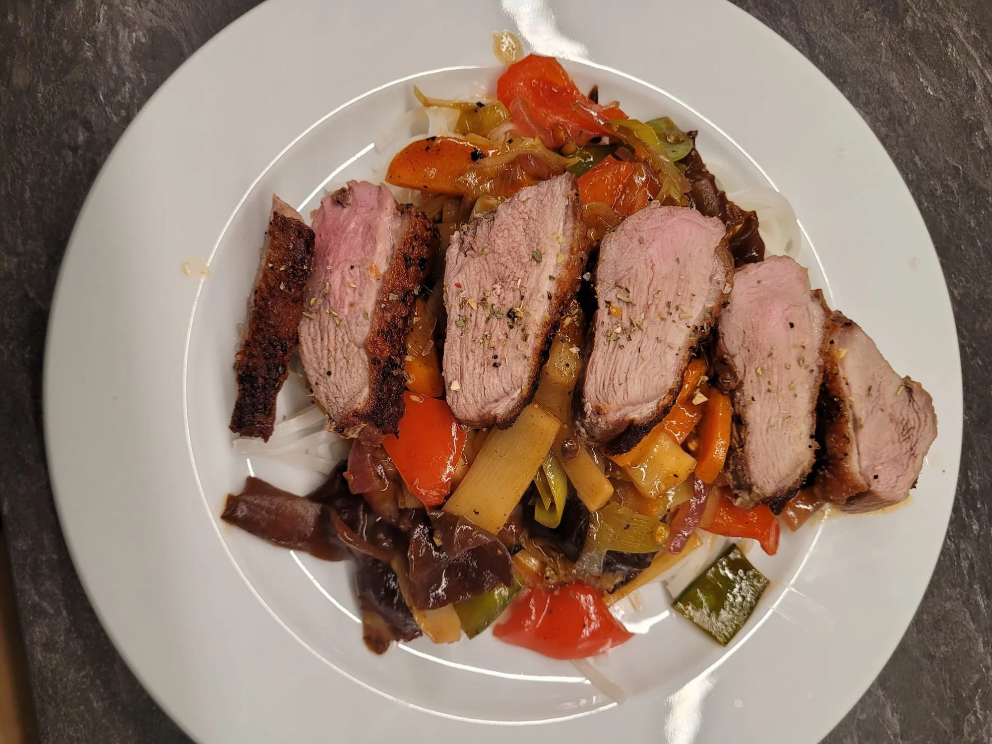 Die Ente war knusprig und saftig.