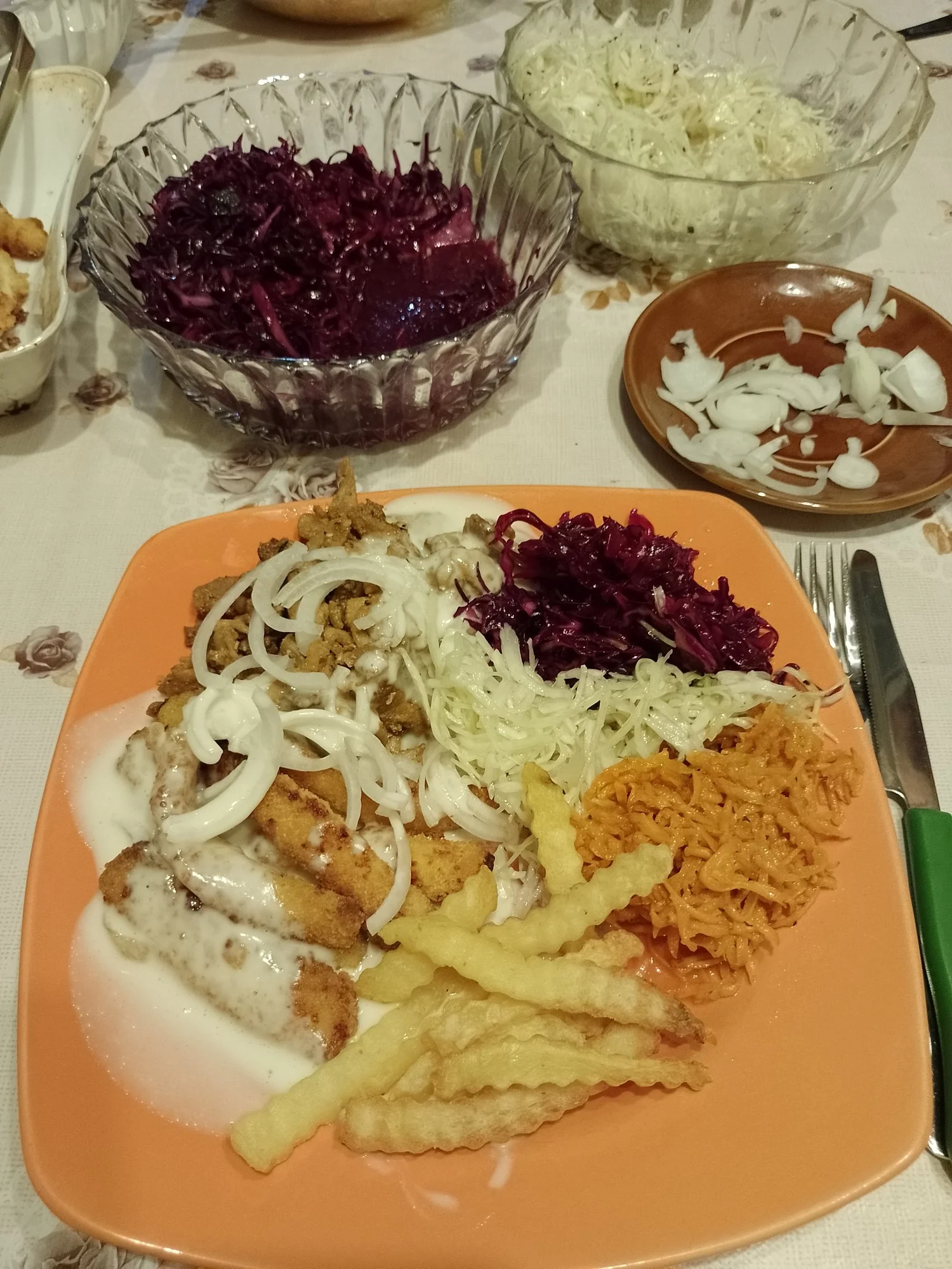 Mmhh, da wär ich gerne zu Gast gewesen.....Anhang anzeigen 695422so lecker gegessen, rot und weisskraut, selbst gestampft, calamares, Gyros, vegane Aioli,, PommesAnhang anzeigen 695423