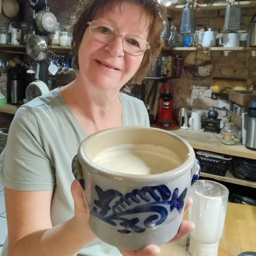Ich nehme Cashewkernen und Wasser nach Belieben so das es cremig wird und mache sie in der Maschine mit Schlagmesser fein zu Püree dann kommt Sojasauce und Hefeflocken dazu und fertig