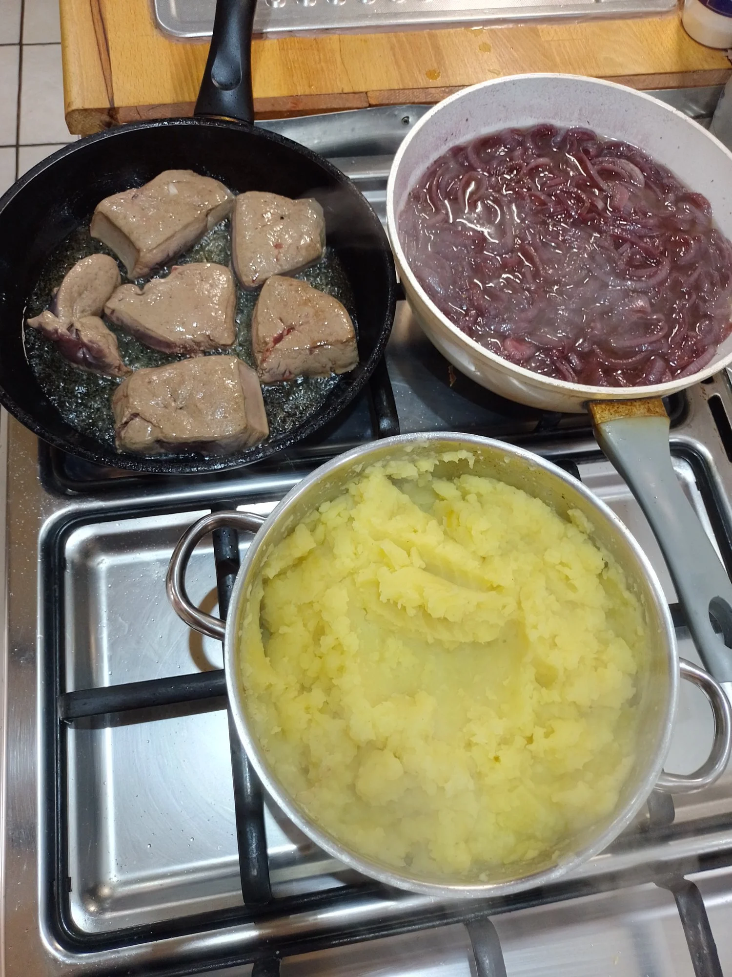 Aus dem Römertopf Hähnchenleber, rote und gelbe Beete, Möhre und Petersilienwurzel, dazu Kartoffelpüree.