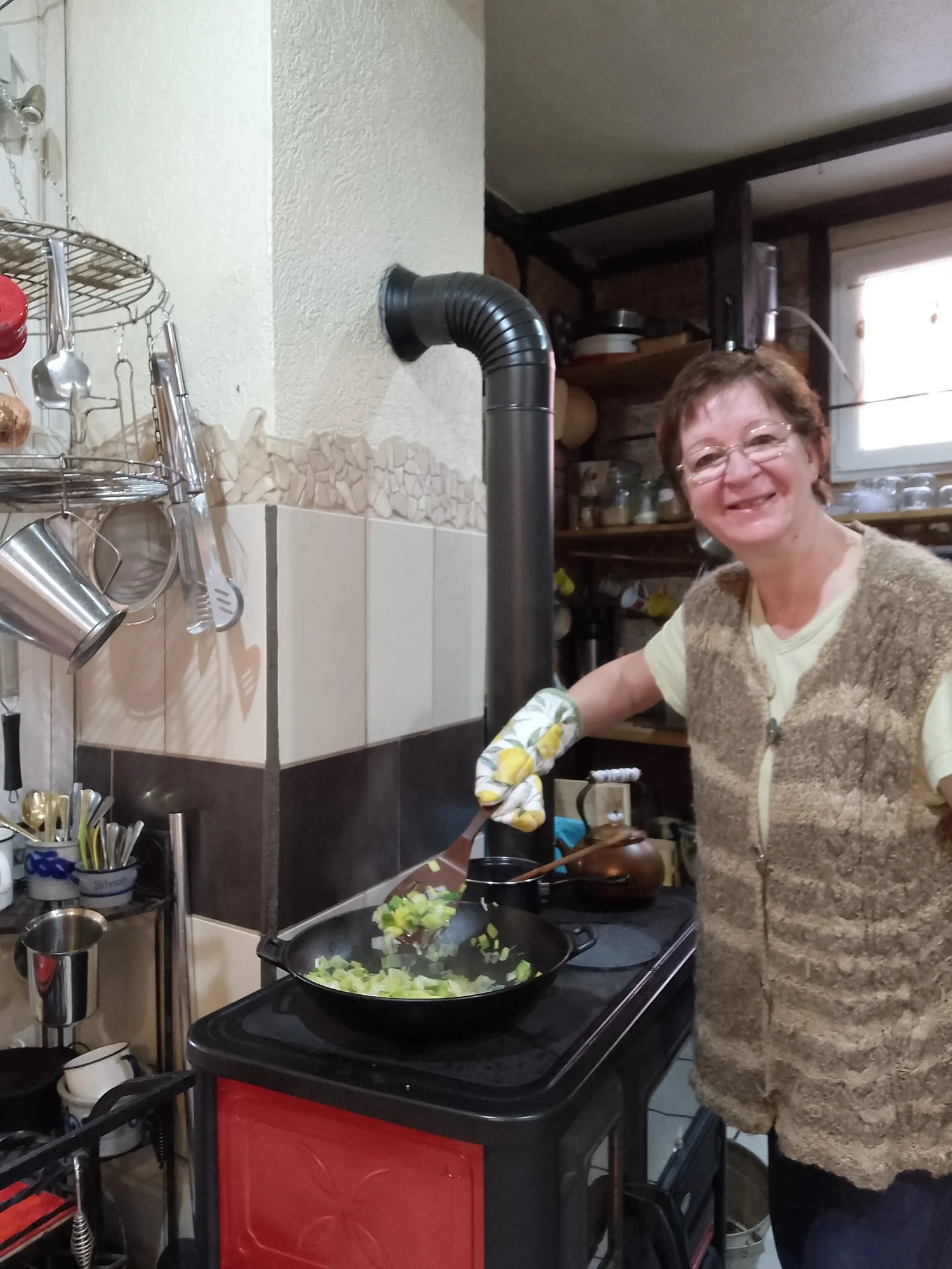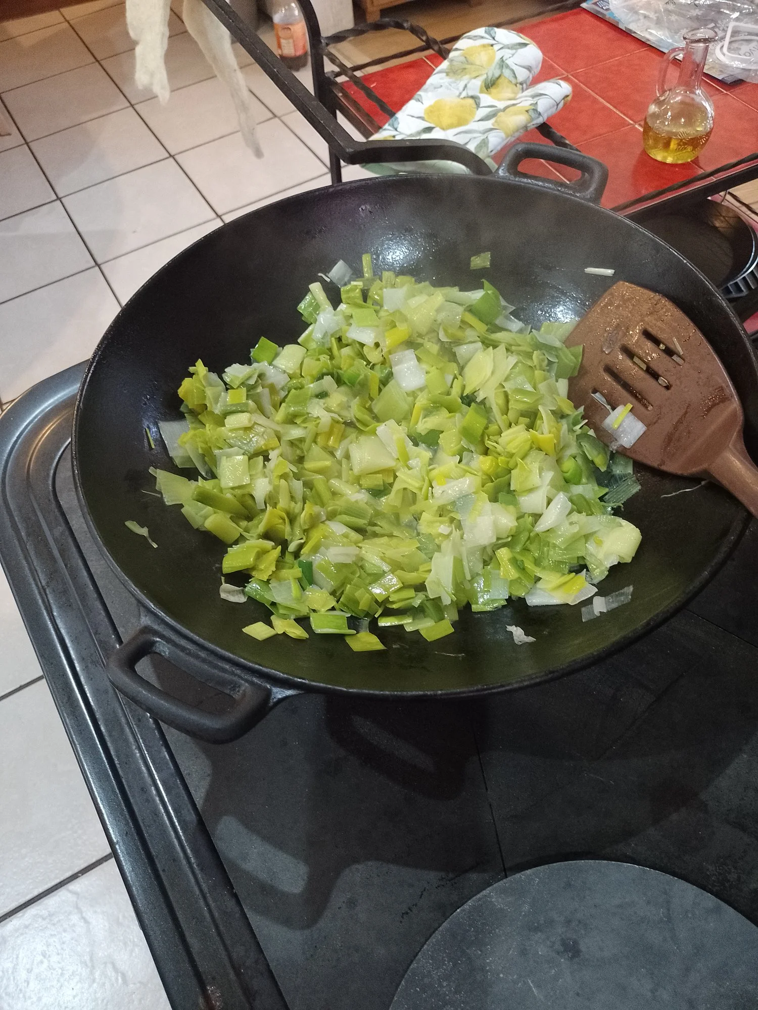 Lauch habe ich gerade auf offener Flamme im Wok auf dem Küchen Holzofen gebraten, ging total schnell und der Wok passt super in die Öffnung