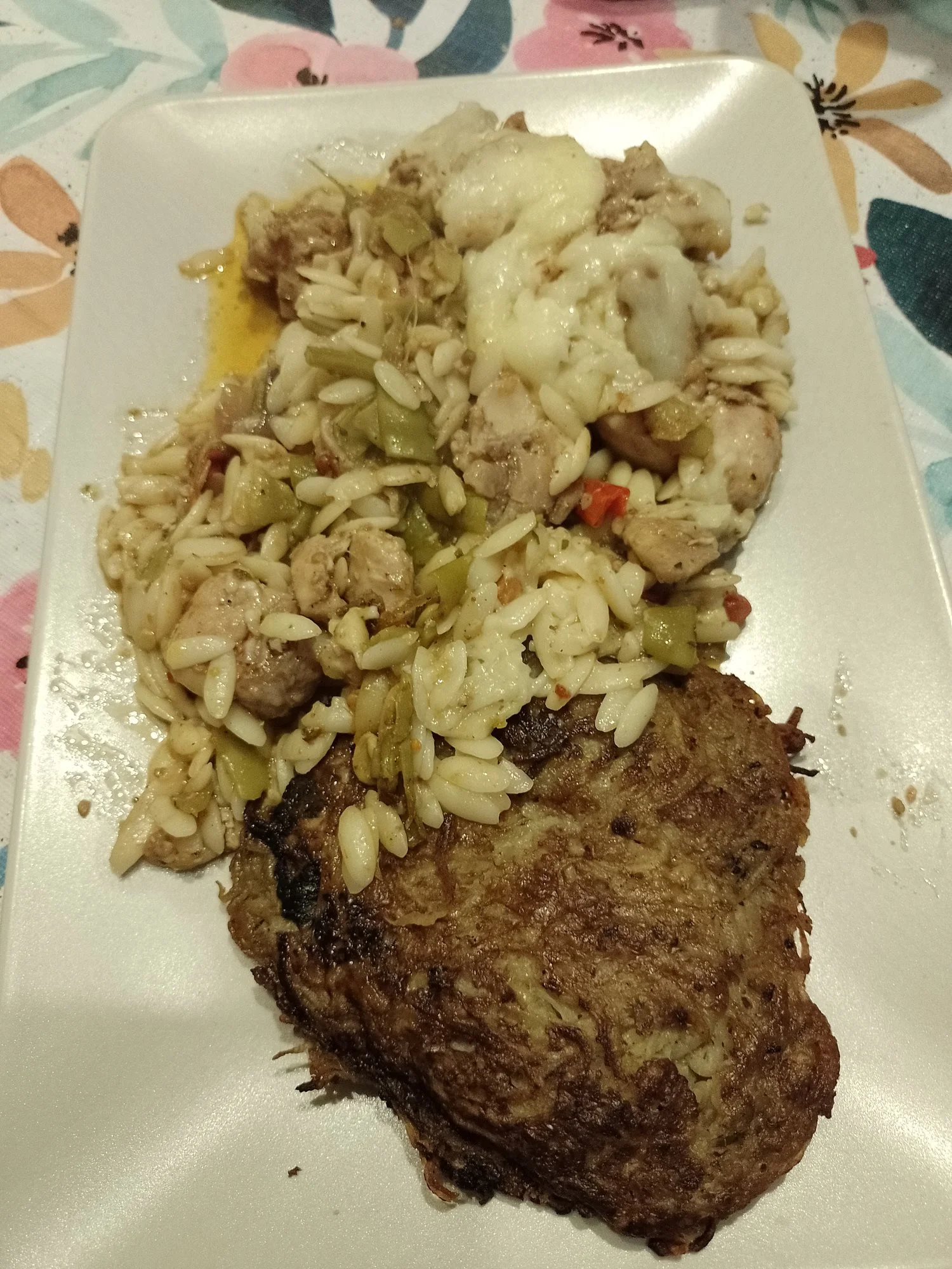 War mir klar, wollte nur meine Präferenz kundtunFalsch. Ohne Hackfleisch. Und kein Reis. Das ist Hirse. Mit Zwiebeln, Knobi, Ei und Käse.