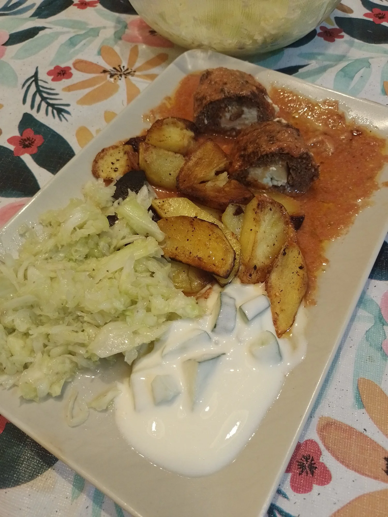 Geschmolzene Kartoffelklöße und geräuchertes BündlaMorgen irgendwas mit Wirsing. Hab da noch keine Idee dazu