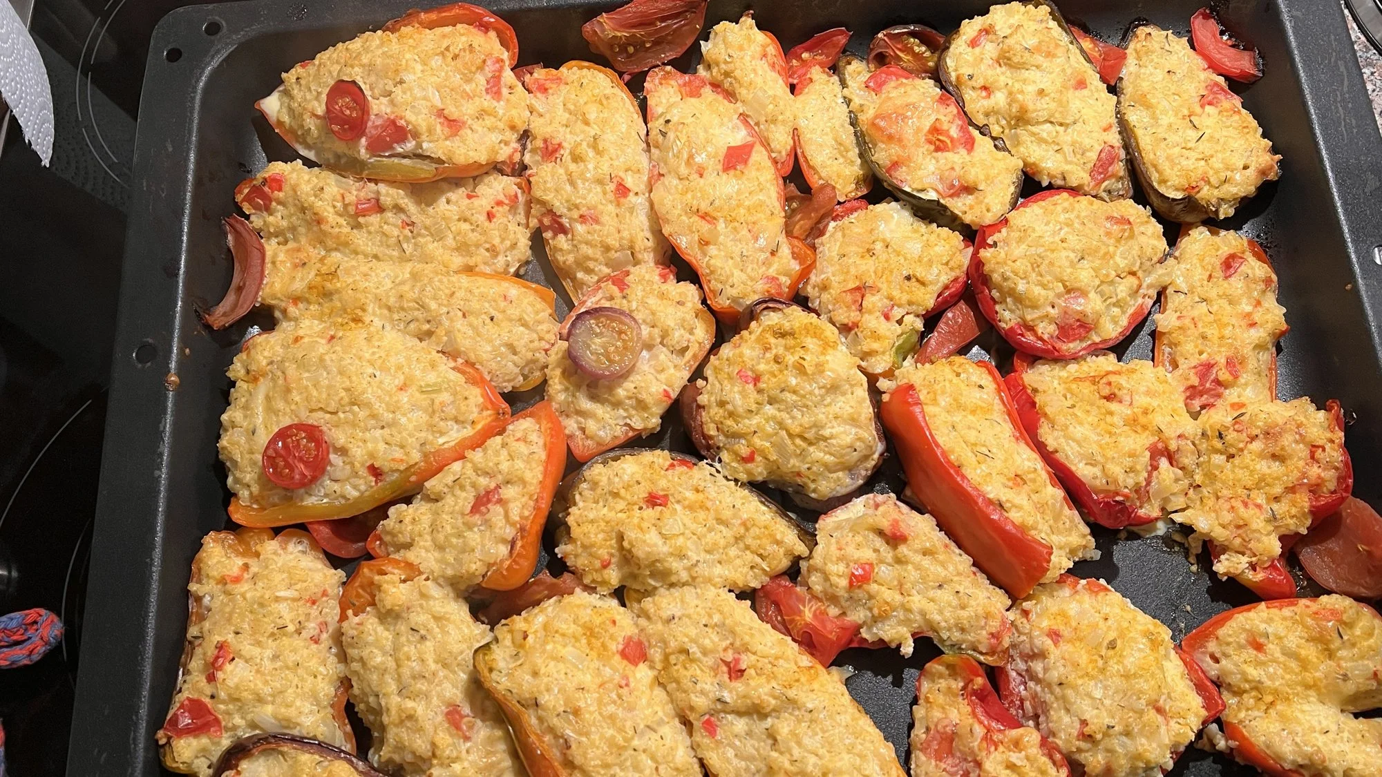 Manchmal erinnert mich die eine oder andere gezeigte Mahlzeit an den Bürgersteig vor der Diskothek aus meiner Jugendzeit.Salat mit Kräutern, Auberginen, Paprika, Tomaten einmal mit Fisch und einmal nicht