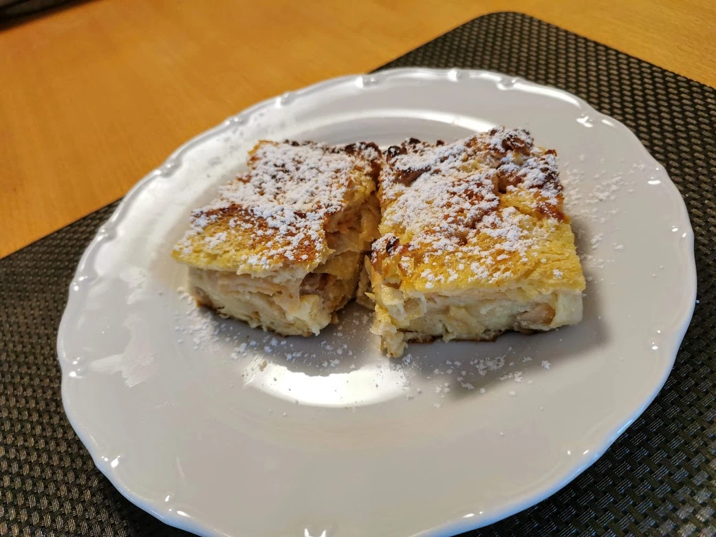 Bei uns gibts heute einen Scheiterhaufen mit Äpfel - altbackene Semmerl und Striezel müssen verarbeitet werden....