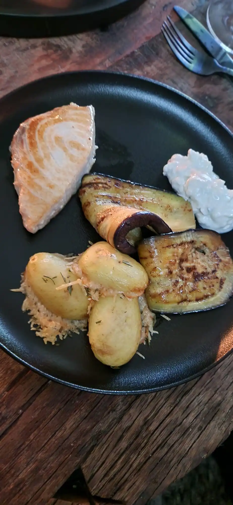 • Gestern hab es Gedünstete Makrele auf Wiesensalbei,mit Wein angegossen , gefüllt mit Purpursalbei und Zitrone 🍋
