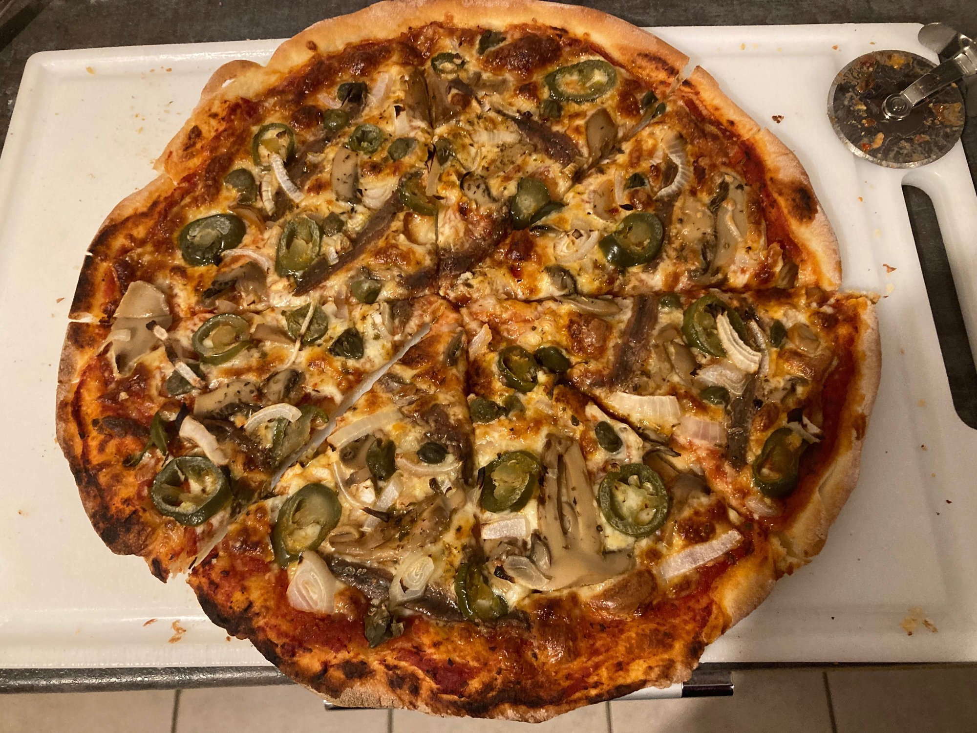 Söhnchens Salami, Pilze, Schinken Anhang anzeigen 760921 Meine Anhang anzeigen 760922 mit Sardellen, Pilzen, Kapern, Jalapenos, Zwiebel, Knoblauch