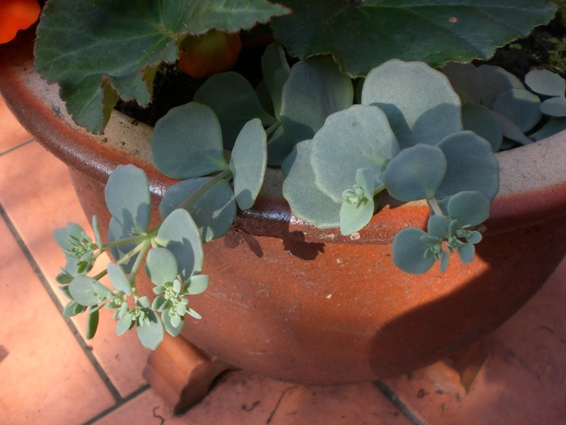 • Ich glaube, dass das ein Sedum ist, kann genauso wie Dachwurz ohne viel Pflege auskommen. Leider ist mir das einfärbige eingegangen. Ich habe ein änliches mit weiß/grünem Blättern, blüht rosa. Das Foto ist von dem einfärbigen.