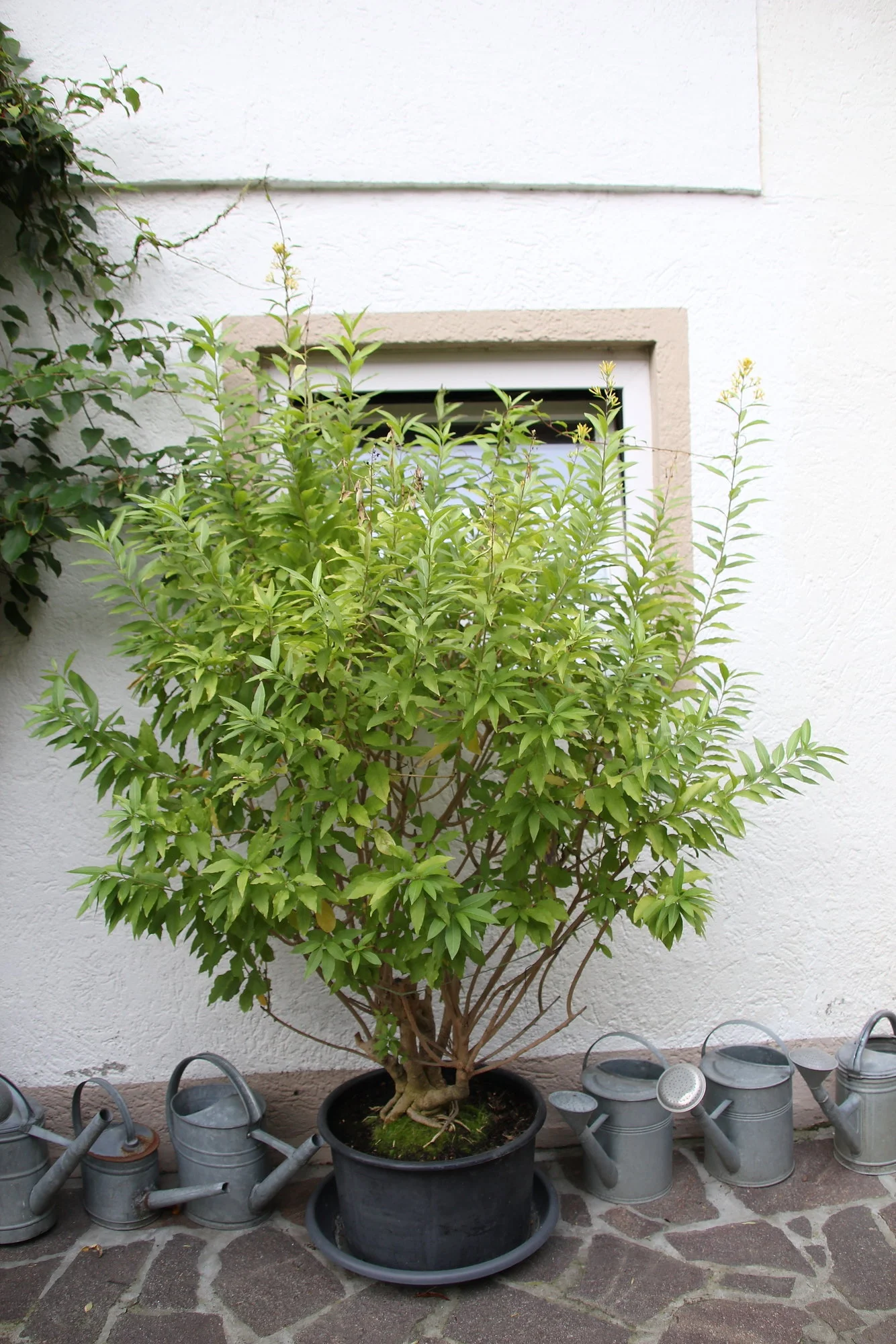 Ja, ja, mach ich gleich. :ROFLMAO: Ich habe ja zwei verschiedene Hammersträucher. Das ist der hellgelbe, der duftet nicht so intensiv, den ich verschenke. Auch aus Platzmangel. Aber der weiße, der duftet nachts. Da habe ich abends ganz weit die Fenster offen, damit ich den riechen kann. Der wird nantürlicht nicht verschenkt.