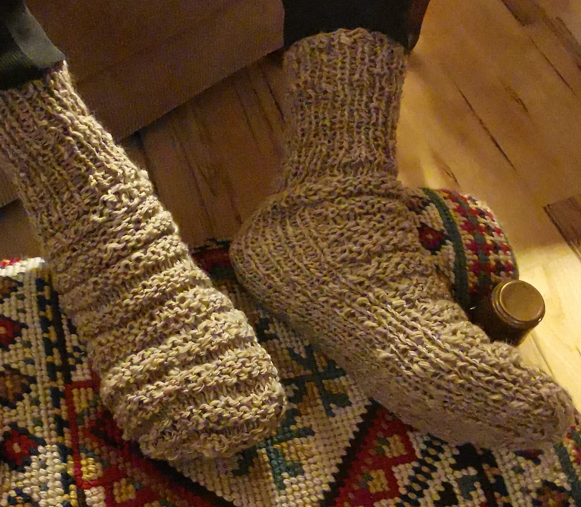 Ich auch und habe die Bananen Haussocken für Schatz fertig, da kommt noch eine Filzsohle drunter