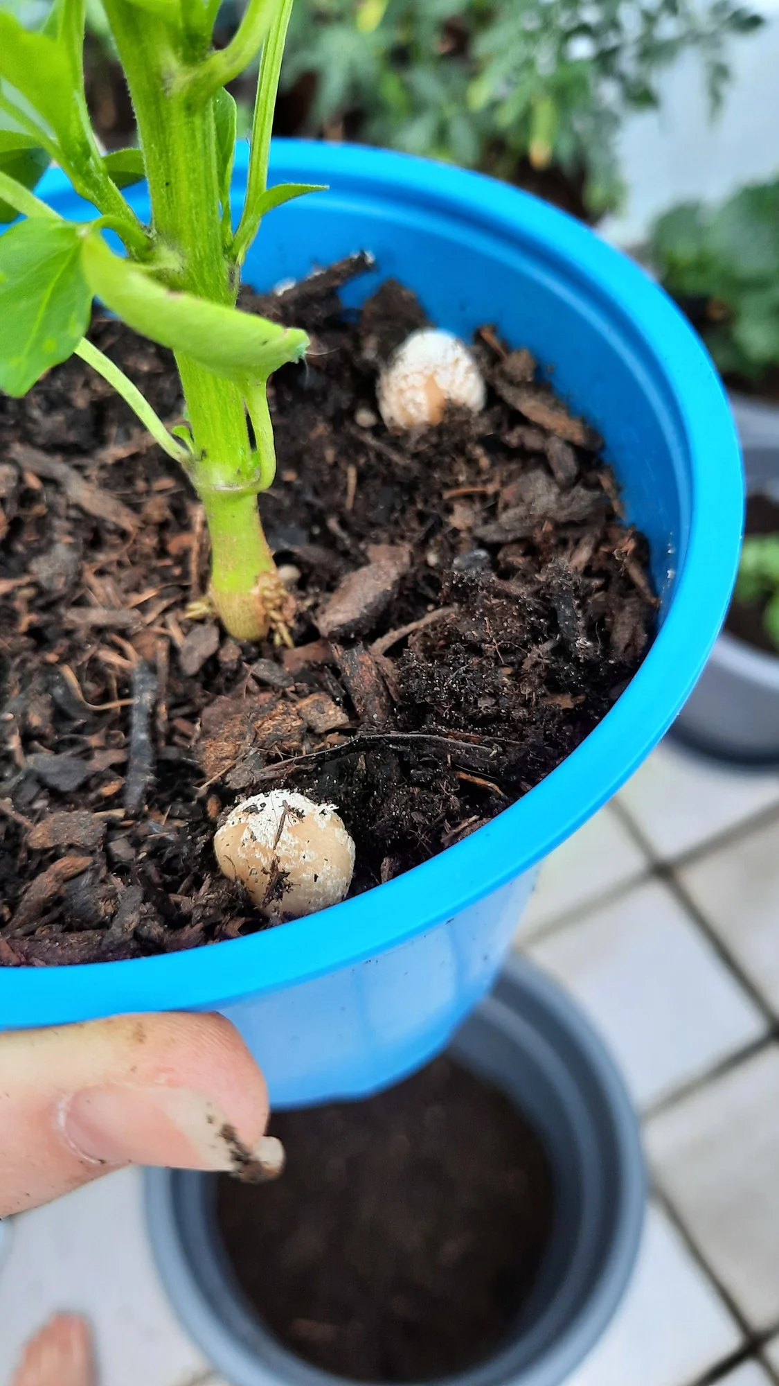 mir fiel gestern auf, dass überall in dem Töpfen um mein Gemüse herum (überwiegend dicht am Stiel) diese Pilze wachsen.