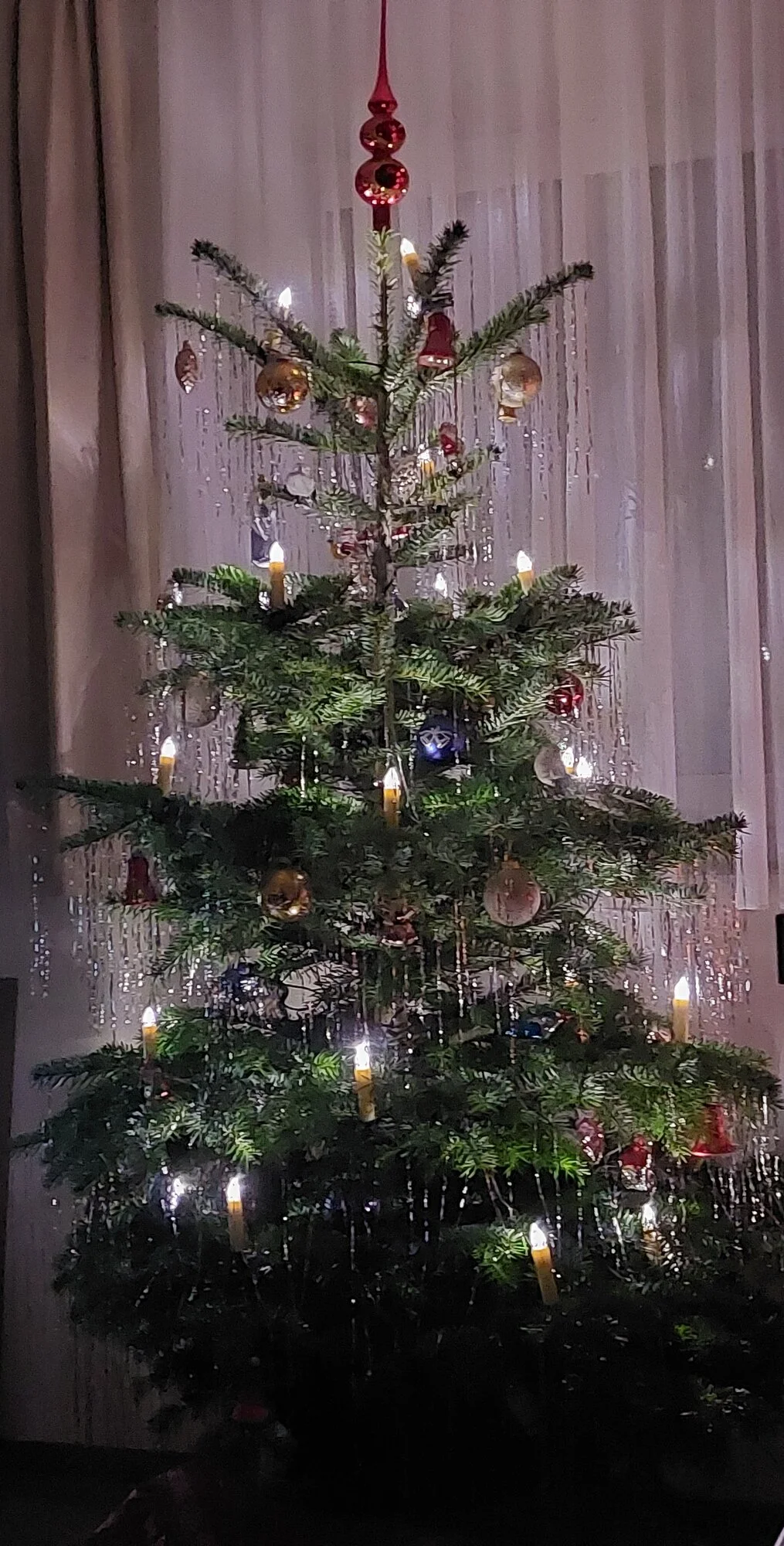 Deiner gefällt vor allem, durch wenigem Schmuck, wodurch der Baum zur Hauptsache wird.Dann stelle ich unseren hier auch dazu:
