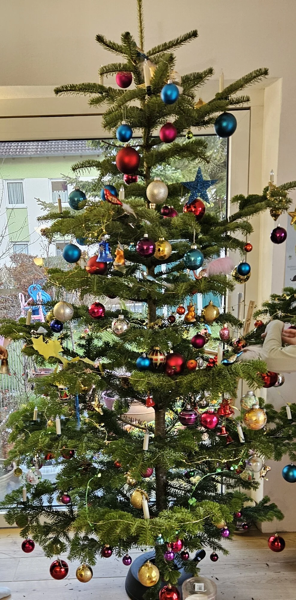 Ja, er ist voller als ich ihn schmücken würde - aber die Kinder (6 und 9) haben ihn zu zweit geschmückt und ich finde sie haben es toll gemacht...