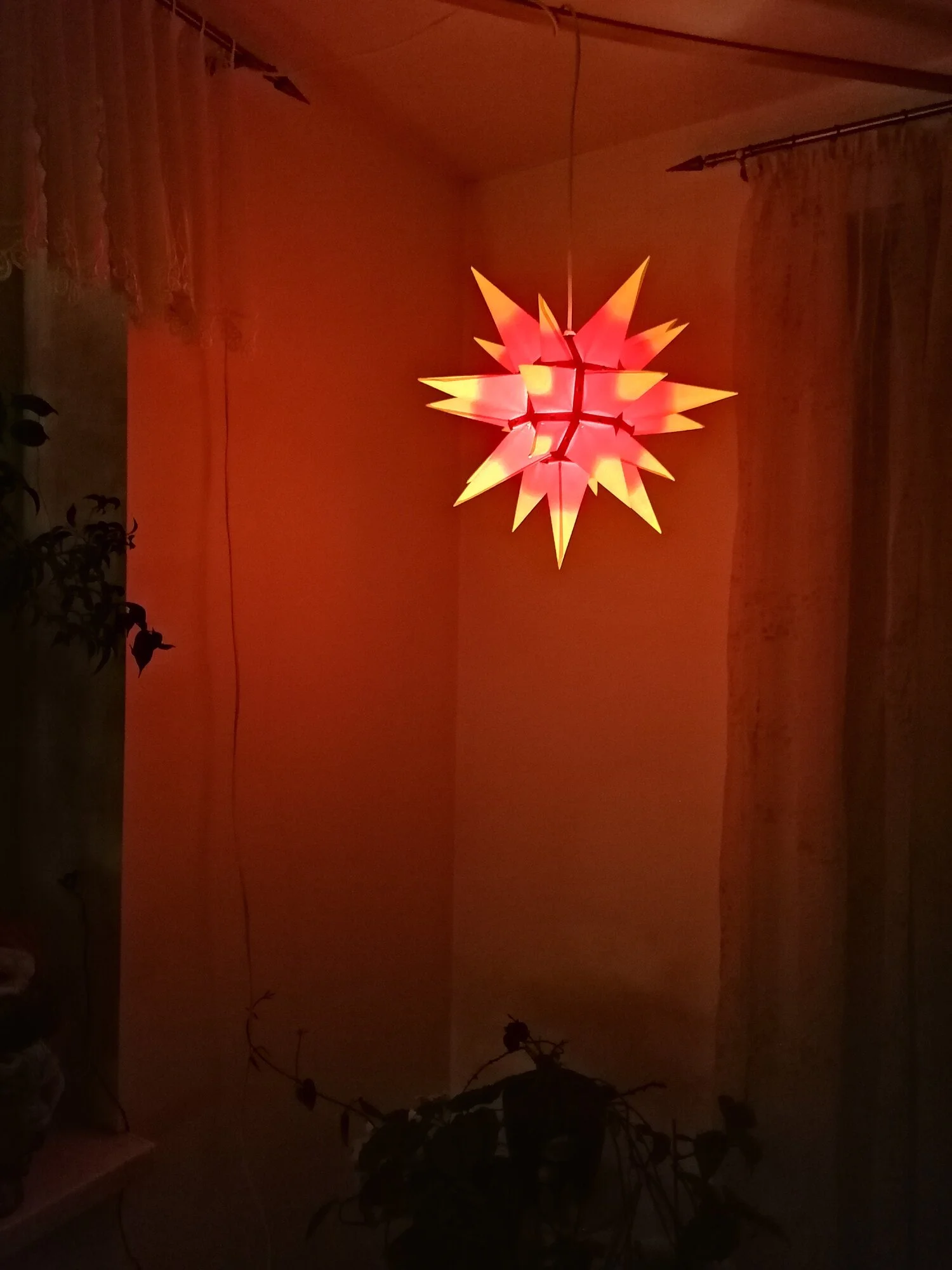 Mein erster mit LED's vor 12 Jahren – fast schon zuviel – ist ne Kette für Draußen