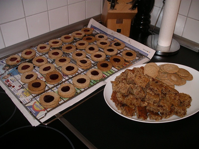 • So, jetzt hab ich eine gefühlte Ewigkeit lang rumgewerkelt und erstmal gibts ne Runde Kekse und Weihnachtsbrot für alle.