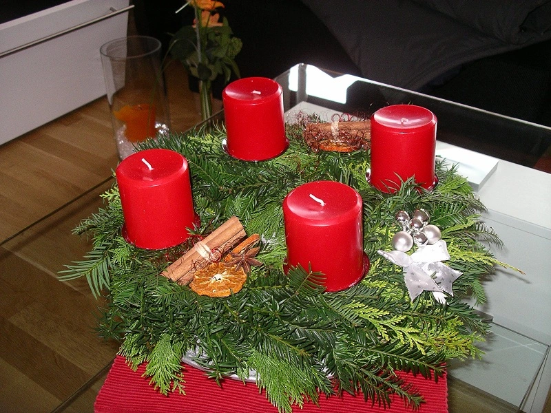 Und dann hab ich mich mal an meine allerersten Kränze getraut, einen an die Haustür und nen Adventskranz, meine Premiere.