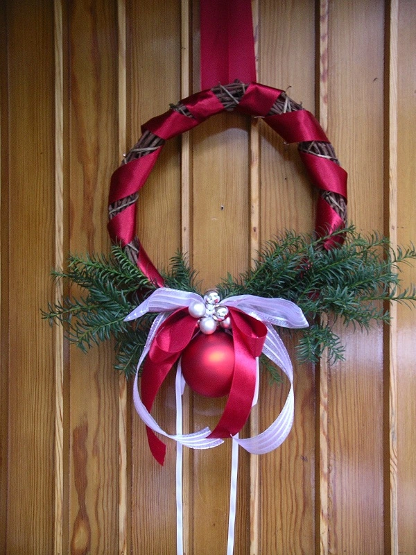 Allerdings werden es bei mir wohl silberne Schleifen, passt evtl. besser zu meiner rot/silbernen Schleife vom Türkranz der gleich in der Nähe hängt.