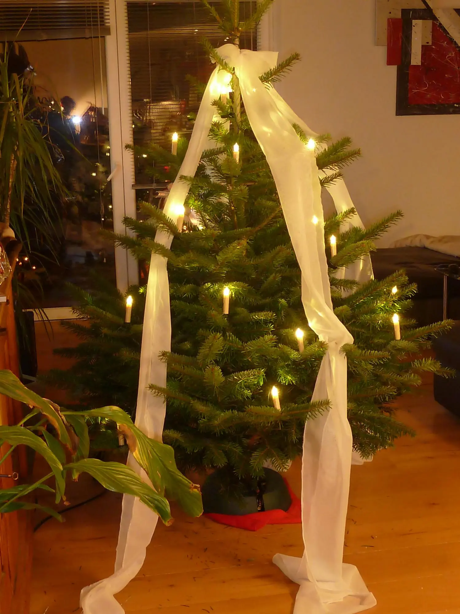 Du meinst, wenn der Baum seine Dienste getan hat? Dann wird die Gardine entsorgt, wenn ich das so noch einmal mache, ich habe noch genug Gardinenstoff übrig. :grins::wink: Es ist ein wunderschöner WBaum. Bin positiv beeindruckt. Ich habe mich nur gefragt wie deine weißen Schleifen, die du aus einer Gardinen gemacht hast, am Ende aussehen:razz: