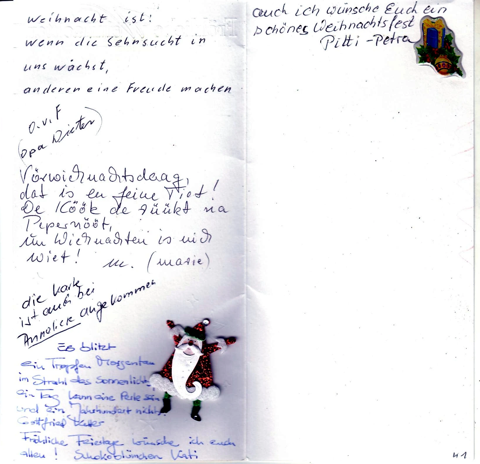 Diese Karte hier macht sich morgen nun mit einem Namen mehr im Innenteil wieder auf den Weg: