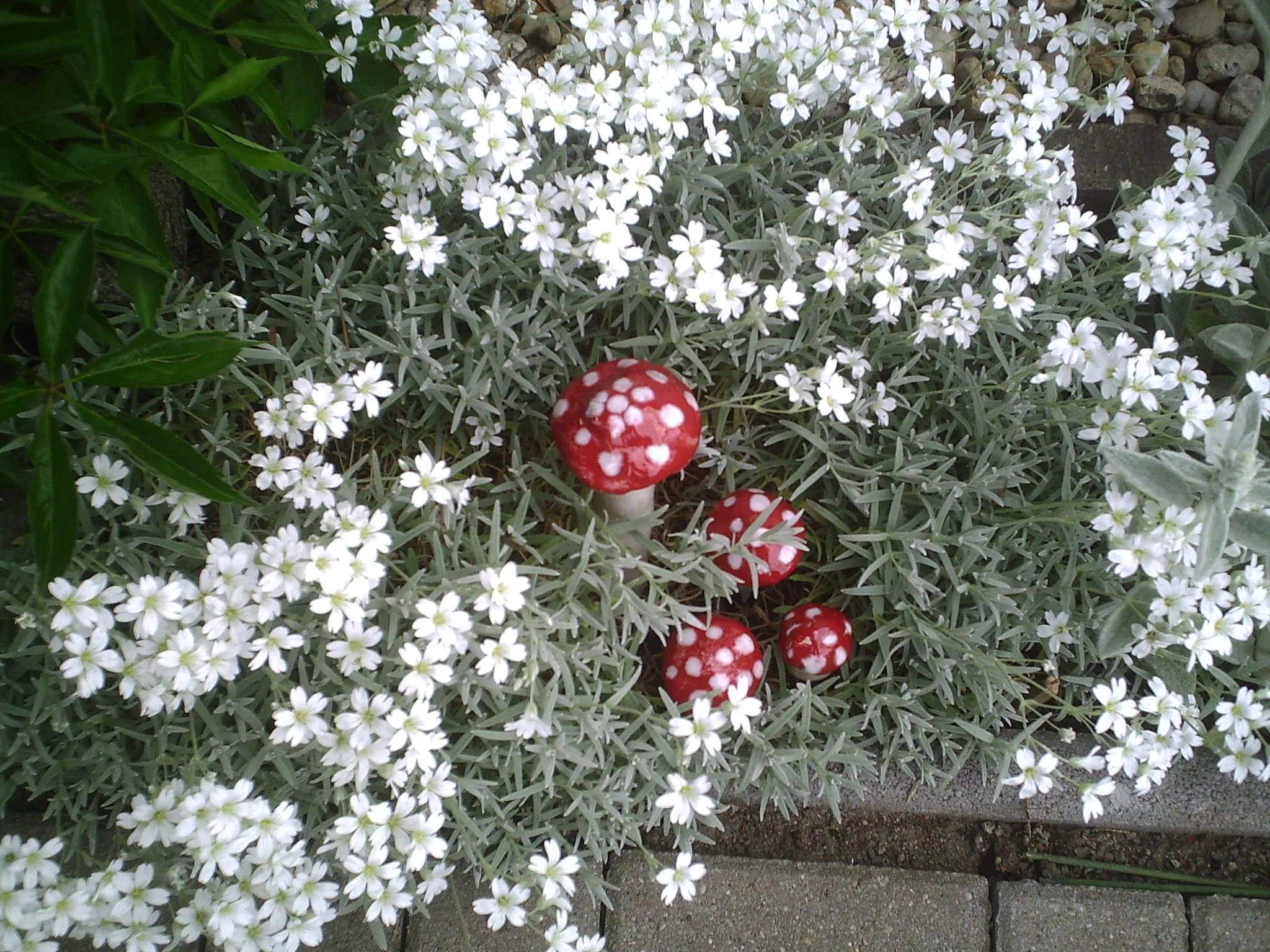 Ich hab' mir so eins auch geholt und gepflanzt. Und dann haben's mir die Schnecken kahlrasiert. Aber es lebt! Und durfte umziehen. Mal sehen, ob ich in einem Jahr, öh, sagen wir, in 3 Jahren auch ao'n schönes Polster im Weiss-Fred zeigen kann! Hältst mir die Daumen?