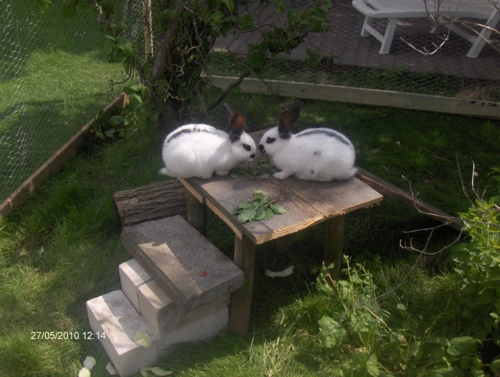 • wenn man dinge zeigt, muss man mit kritik rechenen: dieses mini-ställchen neben den hühnern für zwei kaninchen: das ist doch nicht ernst, oder? egal, ob riesen oder nicht. und warum haben die knaninchen nicht auch zugang zum außenbereich, wenn der stall schon viel zu klein ist?