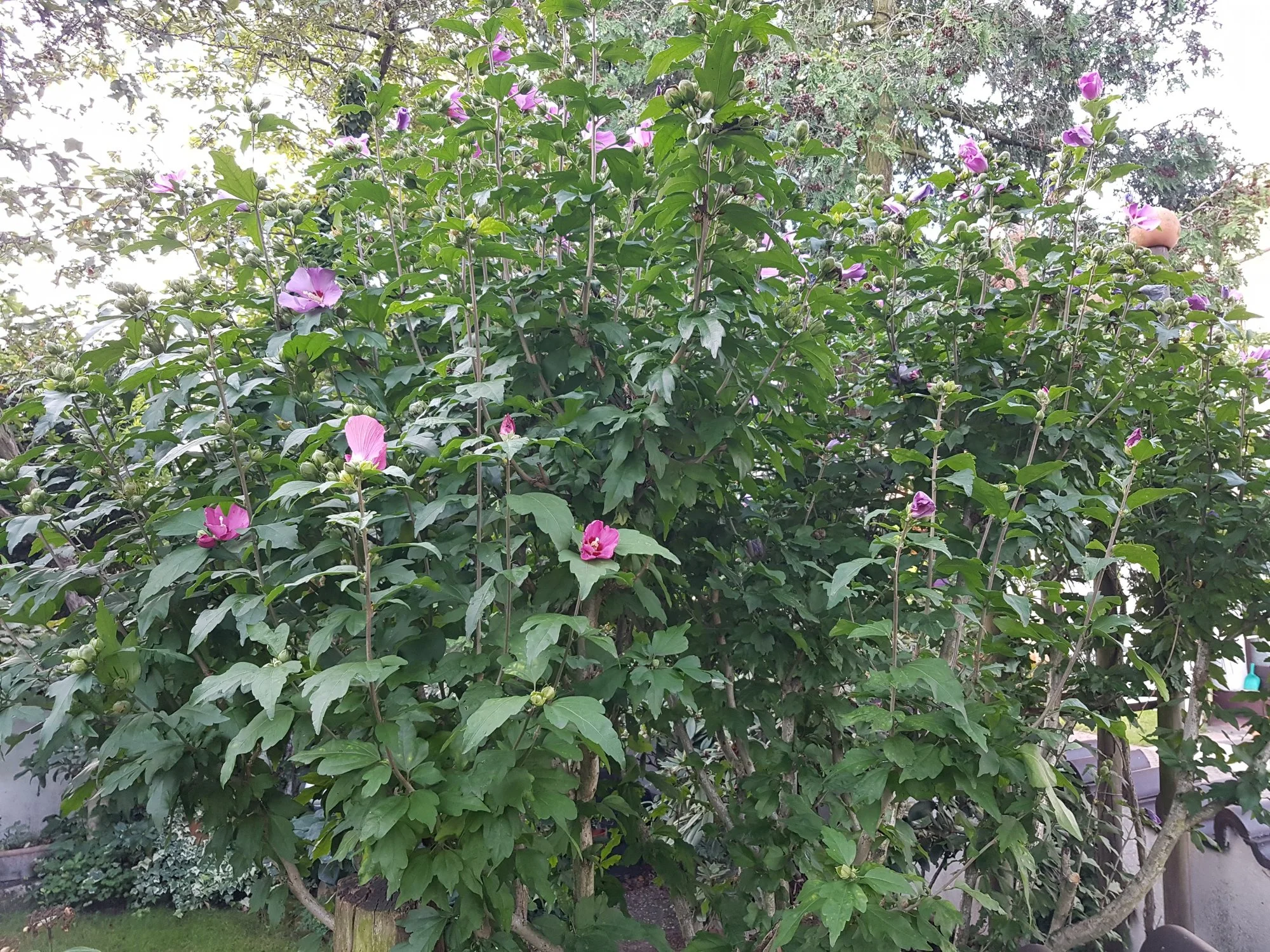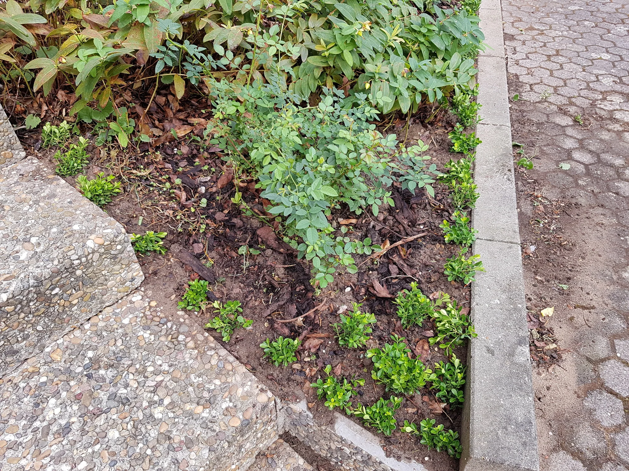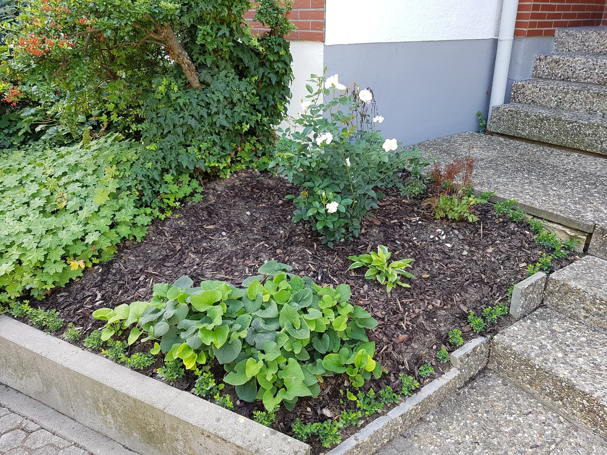 Auch meine 10j alten "mini Rosen" treiben aus wie irre. Direkt vorne an der Treppe: Zwergrose Lupo (Lilla flache Blüten), die hat Teils 1m lange Triebe bekommen!! Vonwegen Zwergrose.. Schnibble da ständig.. Dahinter weiter rechts ist die "Zwergrose Sonnenröschen". Die ist auch gar nicht mehr so "zwergig" sondern treibt aus wie irre und das eher als Bodendecker als als mini Strauchrose.. Hat aber super süsse klene weisse Blüten wobei es davon noch sehr wenige gab..
