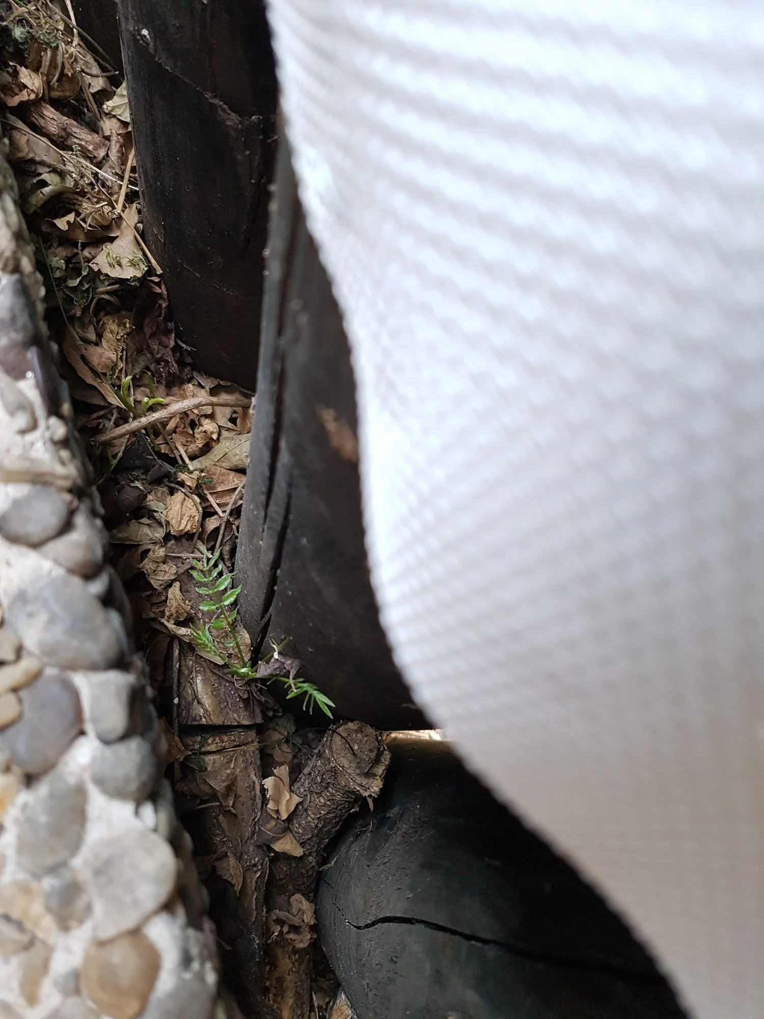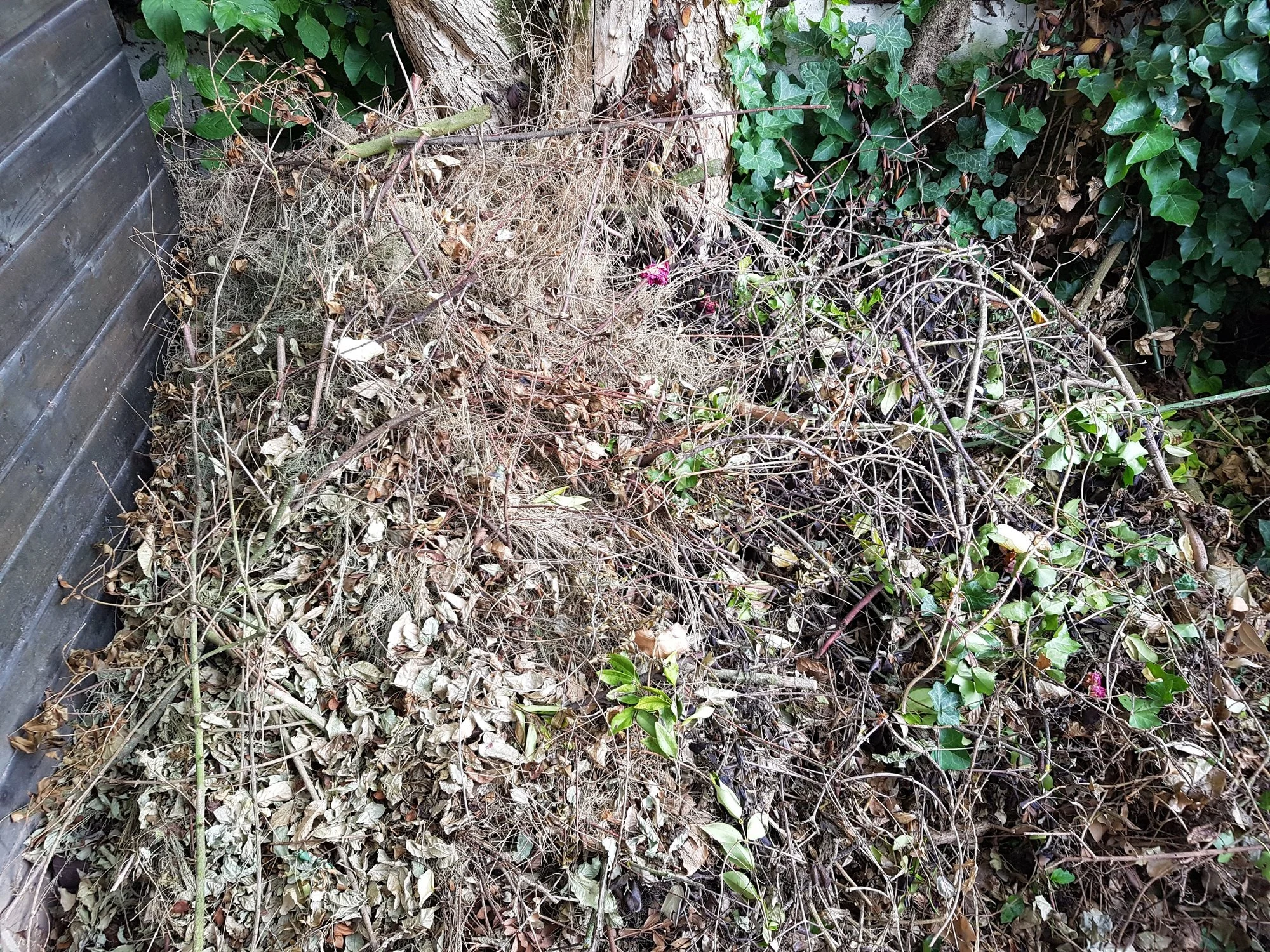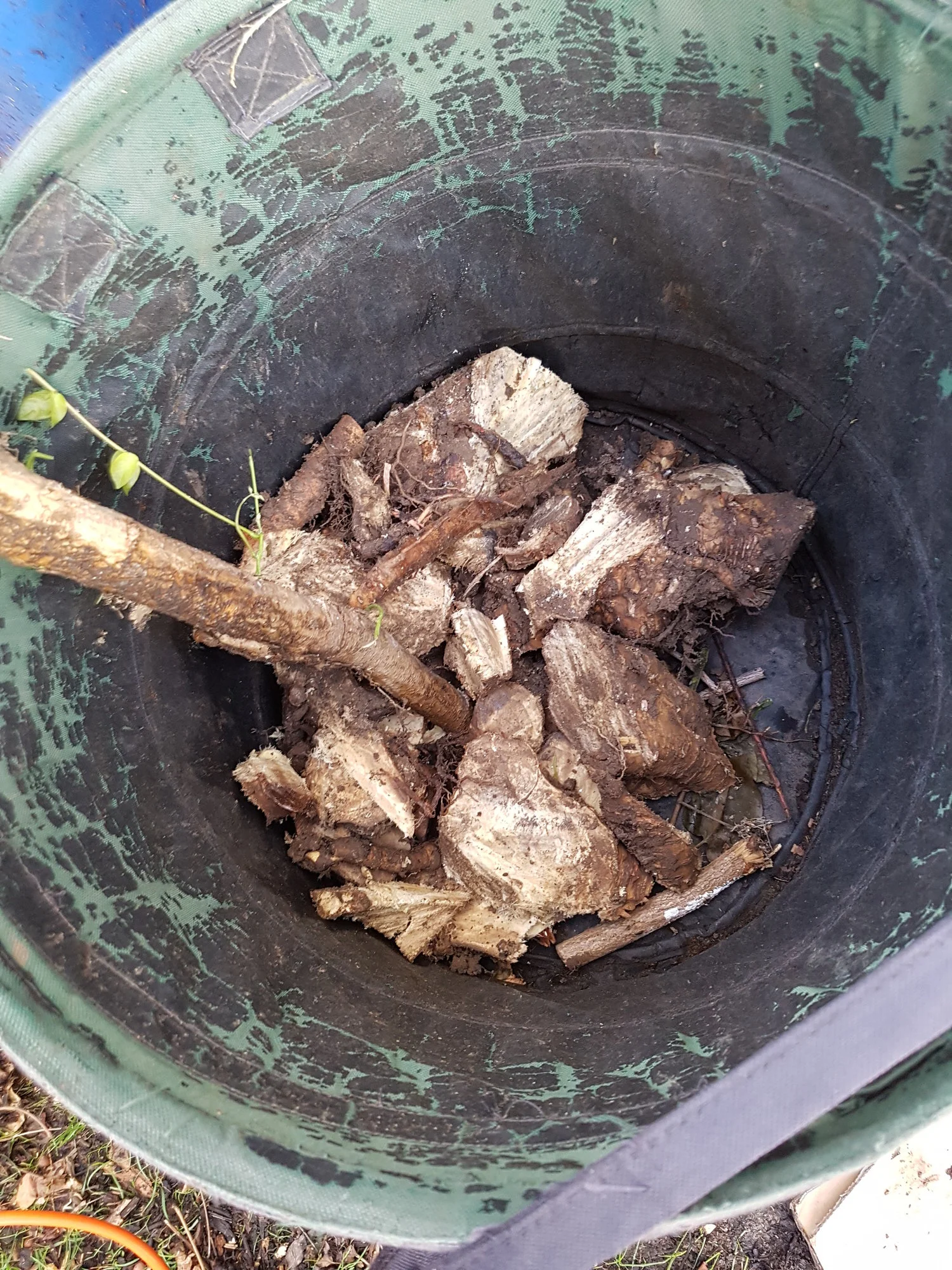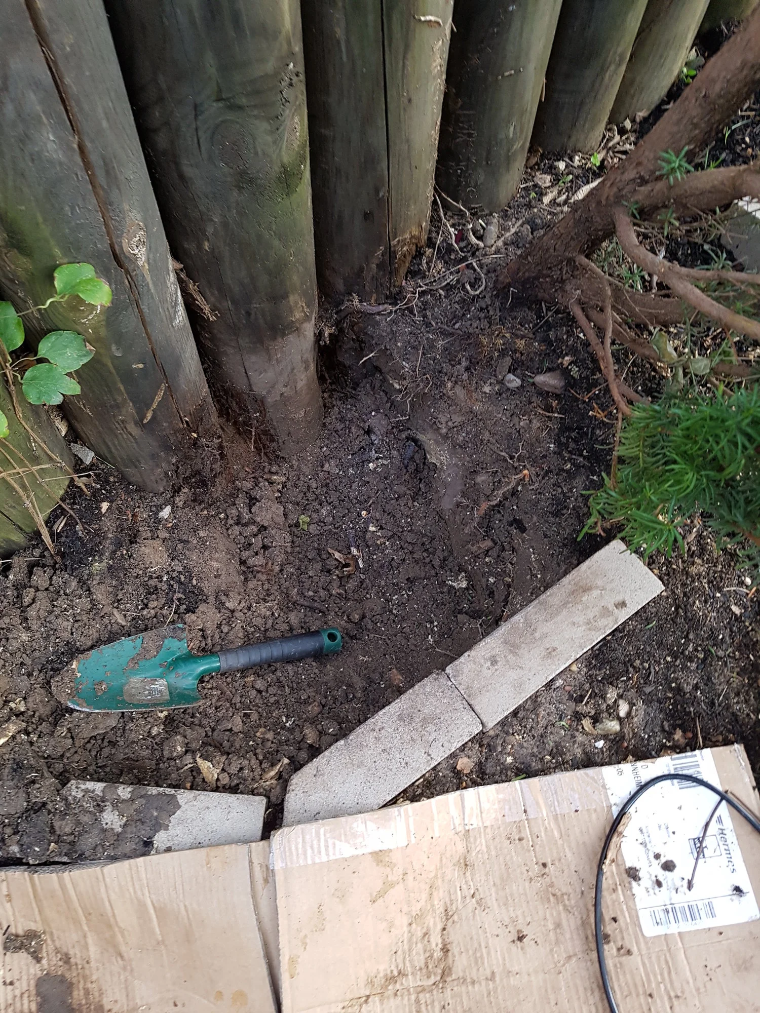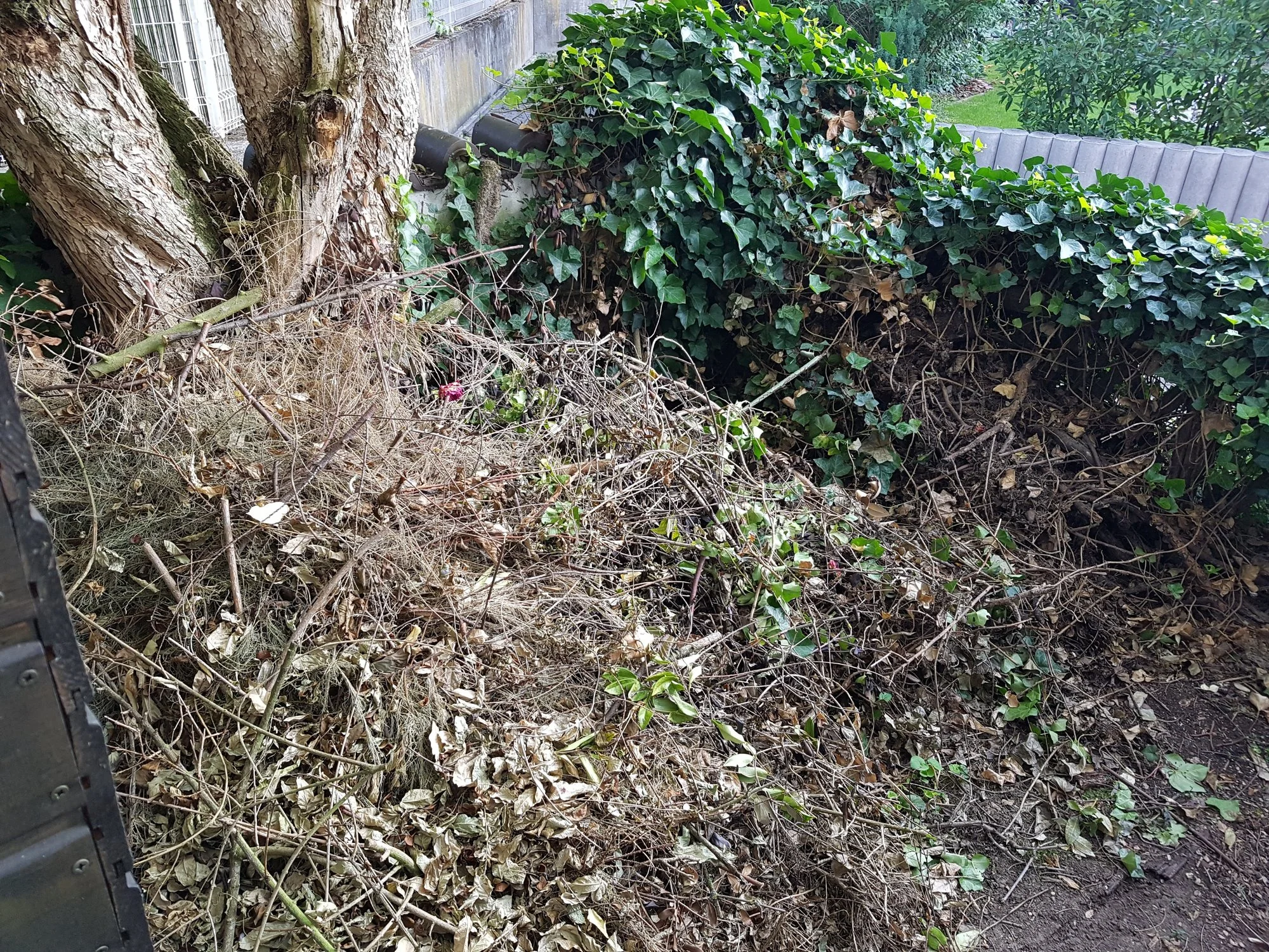 Ich sägte alles aus der Erde das ich da finden konnte. Der gesamte Stamm ist weg, alle Wurzeln gekappt aber diese sind zum Teil noch drin da zu verbunden mit anderen.. Und unter dem Holzzaun zur Terrasse ist noch was das lebt, das Treibt zwischen den Terrassenplatten und Zaun also auf der anderen Seite noch raus