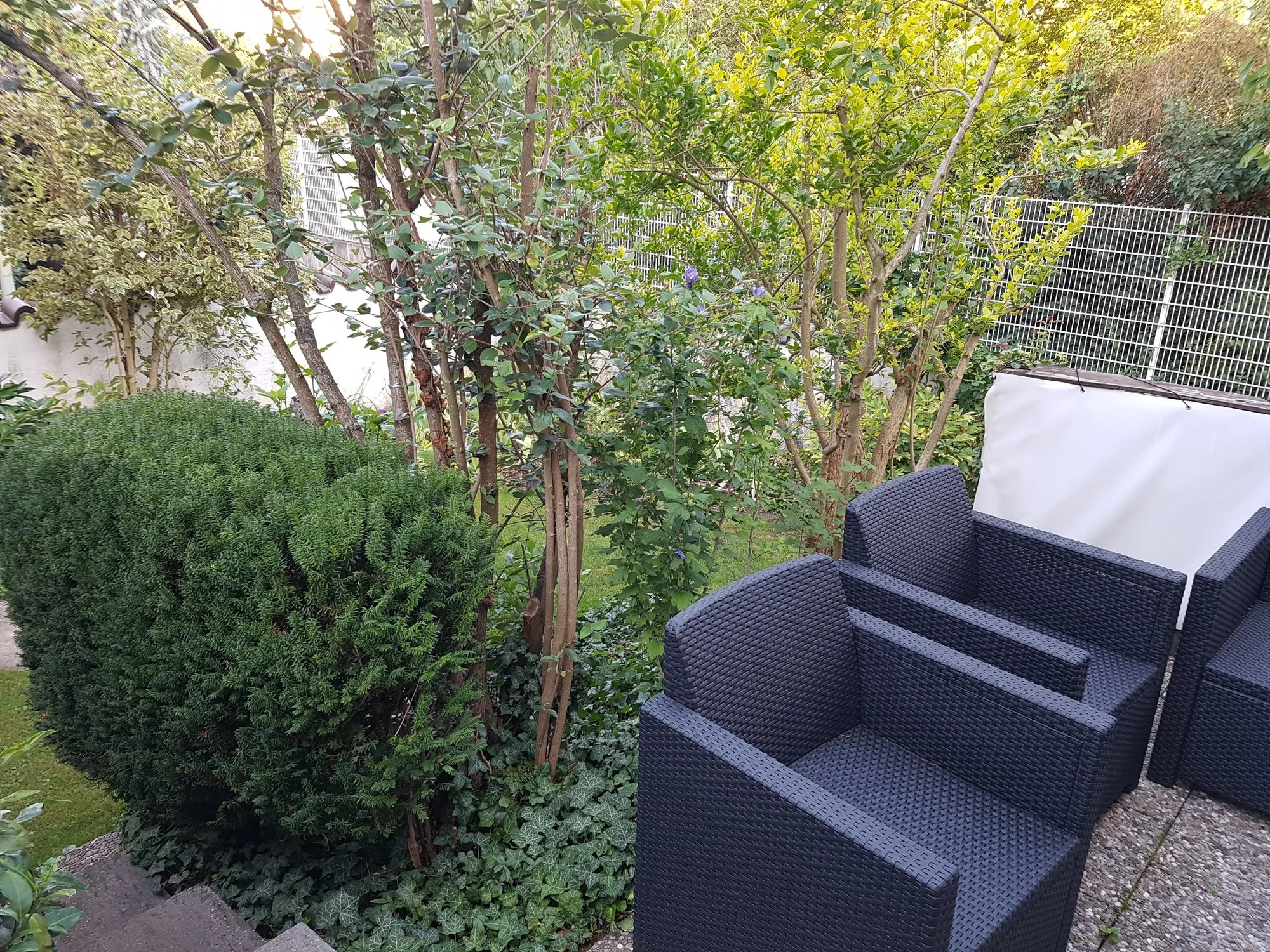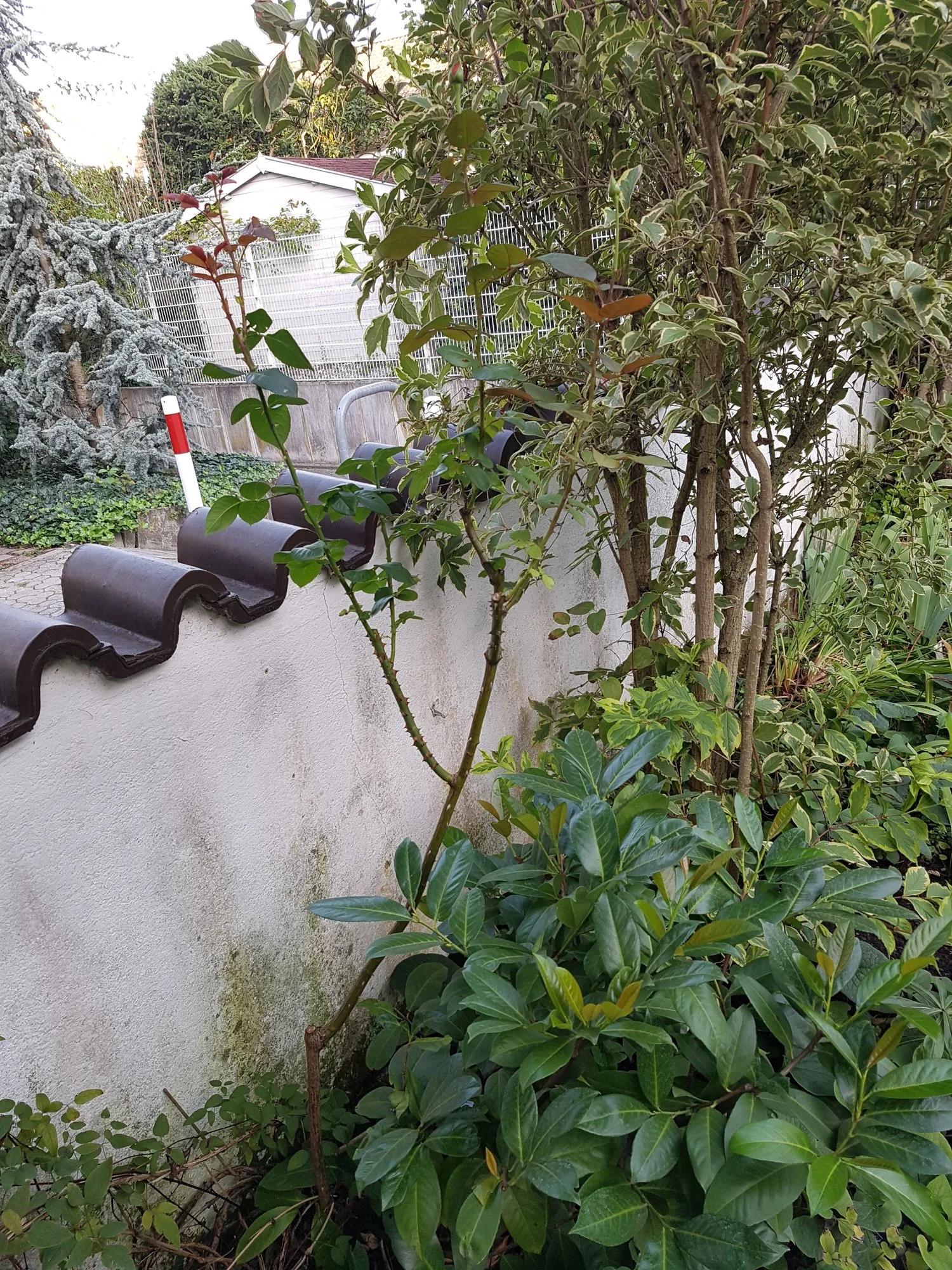An dem Platz sitzen nun 2 Clematis und die Tage noch eine Kletterrose Amadeus.. Auf der rechten Seite neben der "Tanne" (oder so) sitzt schon eine die auch prächtig austreibt.. Brauchte ne weile zum Wurzeln da alles voller alter Wurzeln darunter ist aber nun so langsam wird es was.. Vom Hauptgarten folgen gleich noch Fotos.