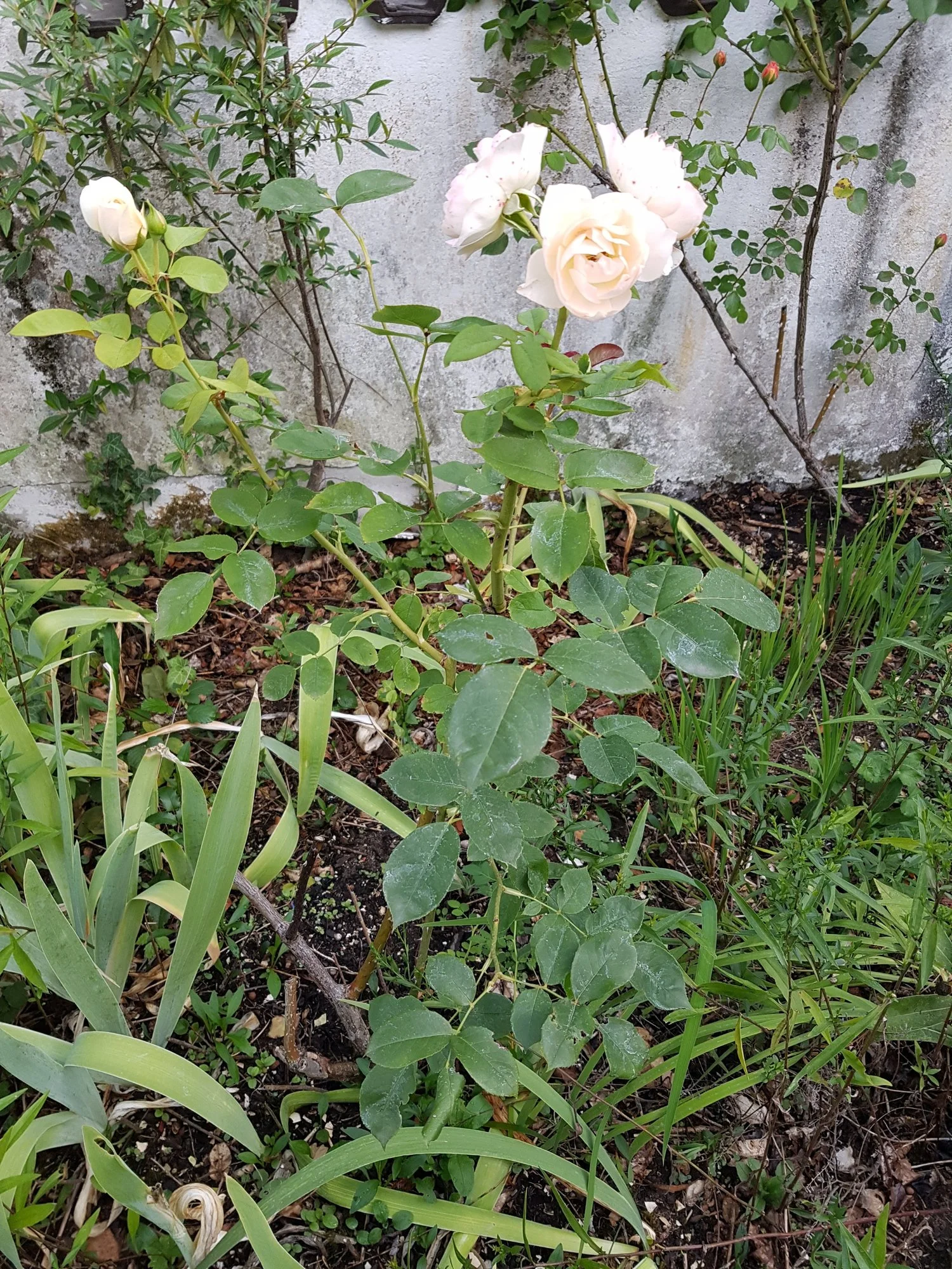 Meine "Fairy King" und "Faire Red" kränkelten anfangs etwas aber nun treiben die auch 1A aus. Dahinter Rechts die "Manhatten Blue" (alle 3 von Dehner! Nie wieder kaufe ich da..) mag auch noch nicht so aber es wird..