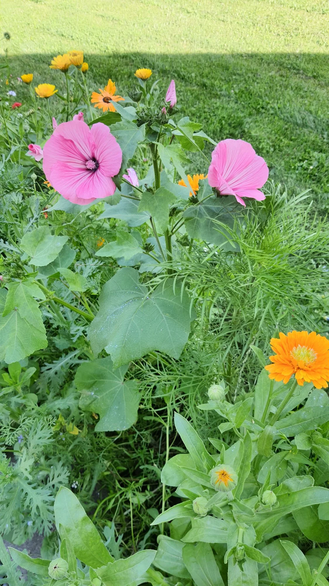 Eine BechermalveDas ist eine Malve, die ist einjährig. Die samt sich selber aus, wenn man den Samen ausreifen und ausfallen läßt. Die gibts auch in weiß.