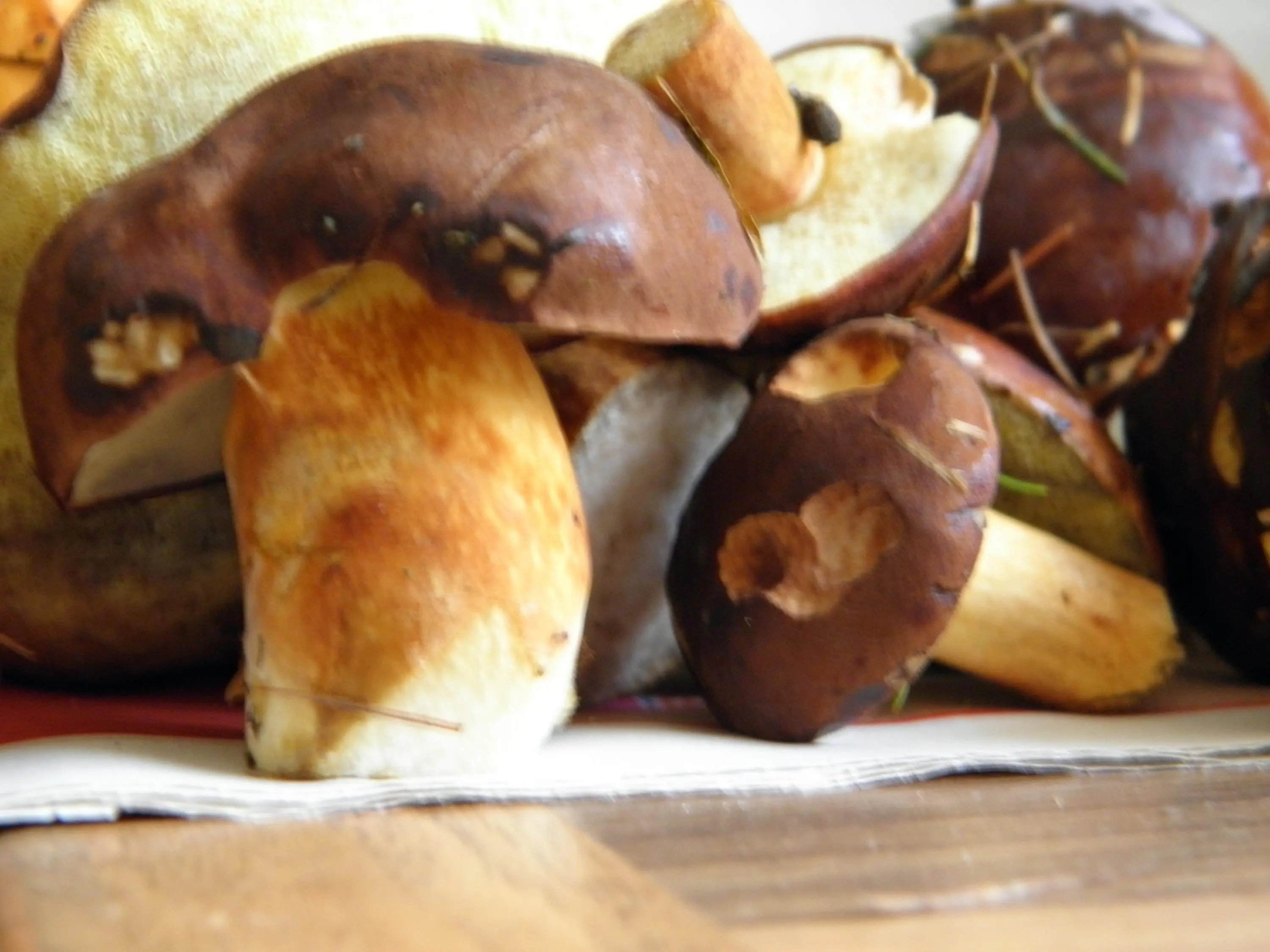 auf dem ersten Bilde möge man bitte das riesige Exemplar eines fränkischen Steinpilzes bewundern ( liegt vor Messerspitze)......