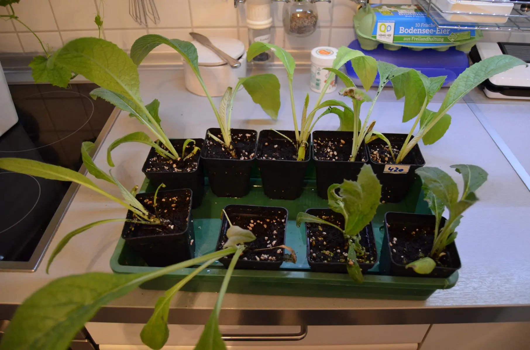 Davon 5 richtig groß und wüchsig. Drei wollen nicht so richtig aus den Puschen und mickeln still vor sich hin.