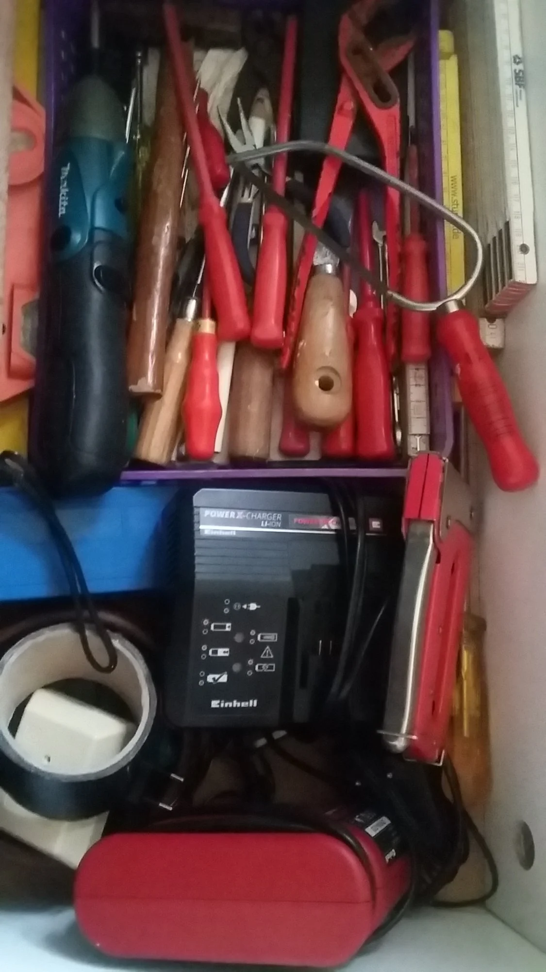 Mein Mann hat alles gut sortiert in seiner Werkstatt. Für jeden "Fall" stellt er das nötige Werkzeug in einen Eimer. Somit hat er alles übersichtlich griffbereit und nichts unnötiges dabei. Allerdings ist es vl auch eine Frage des Alters und der Übung, dass man die Übersicht hat und nichts vergisst.