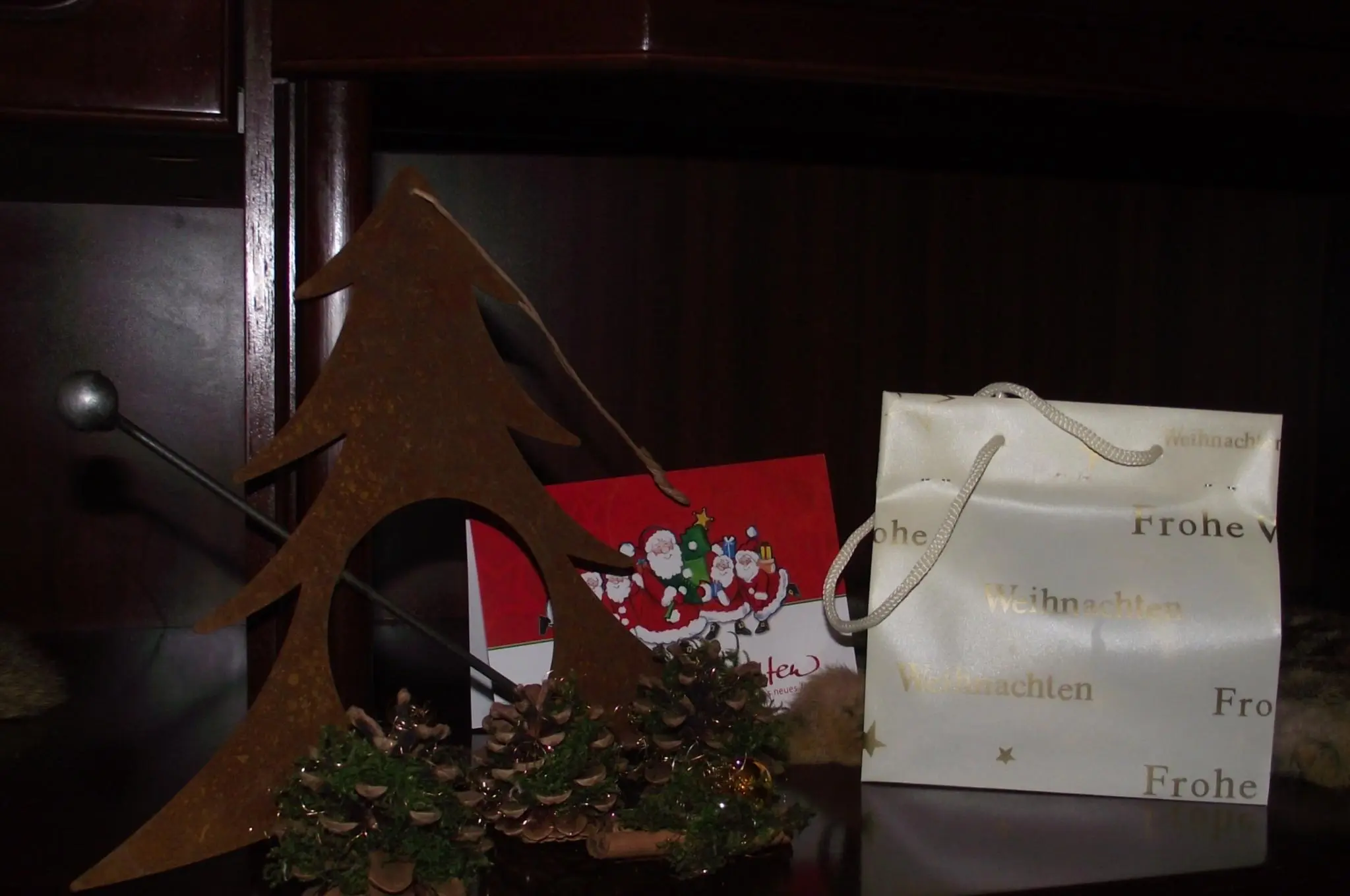 Weiterhin erfreut mich ein selbstgemachtes Teelicht, eine schöne Weihnachtskerze und weihnachtliche Deko, sowie ein Räucherhäuschen.