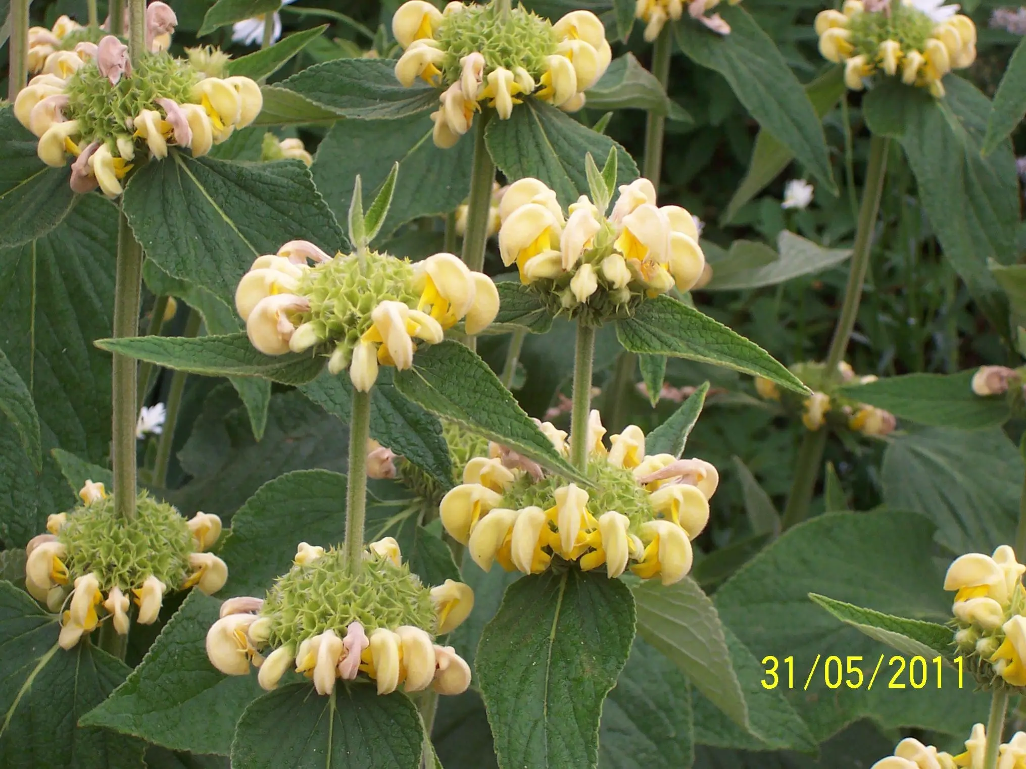 hab eine staude im garten und weiss nicht mehr woher. ist ca 1 m hoch, blüht seit 3 wochen, die blüten sind wie kleine monde um den stengel gewachsen, in gelb. ist interessant. wer kennt diese pflanze?
