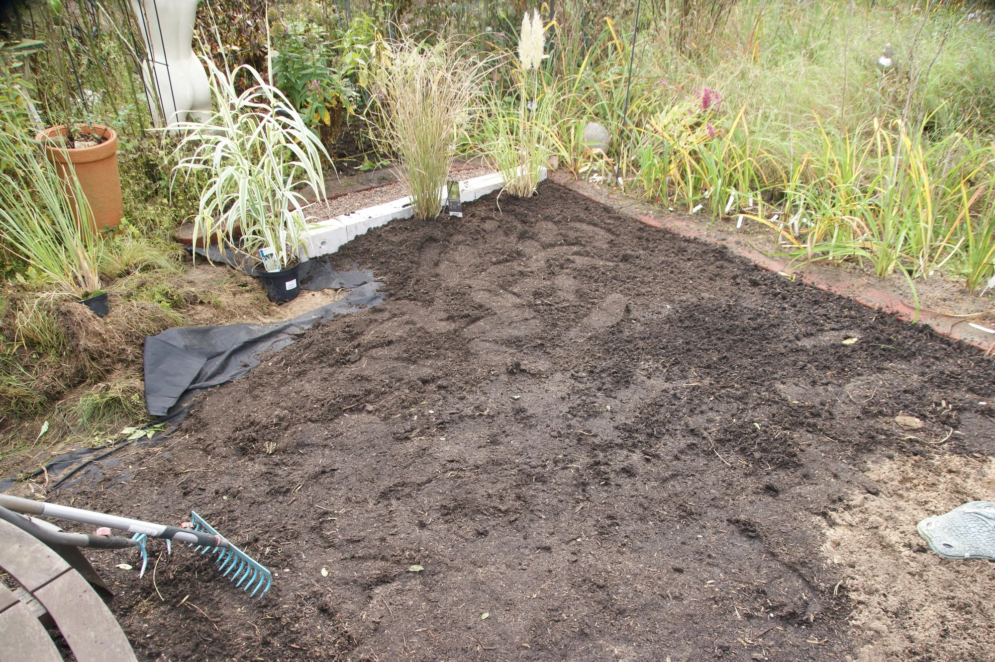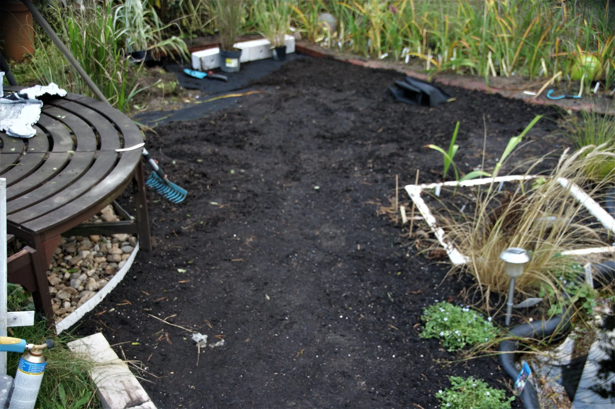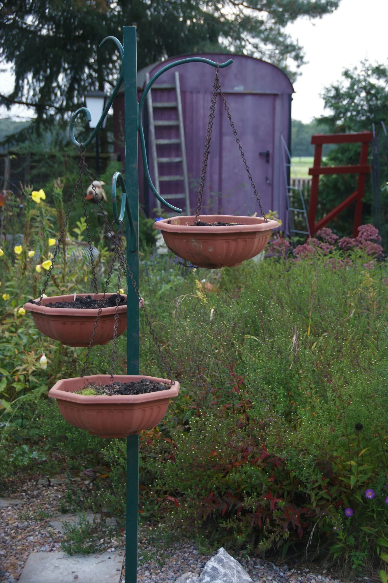 Ich hatte hinter dem Gartenhäuschen noch das Dreibeingestell stehen, mit dem wir früher Motoren ein und ausgebaut haben, und auch den großen Grillkamin.