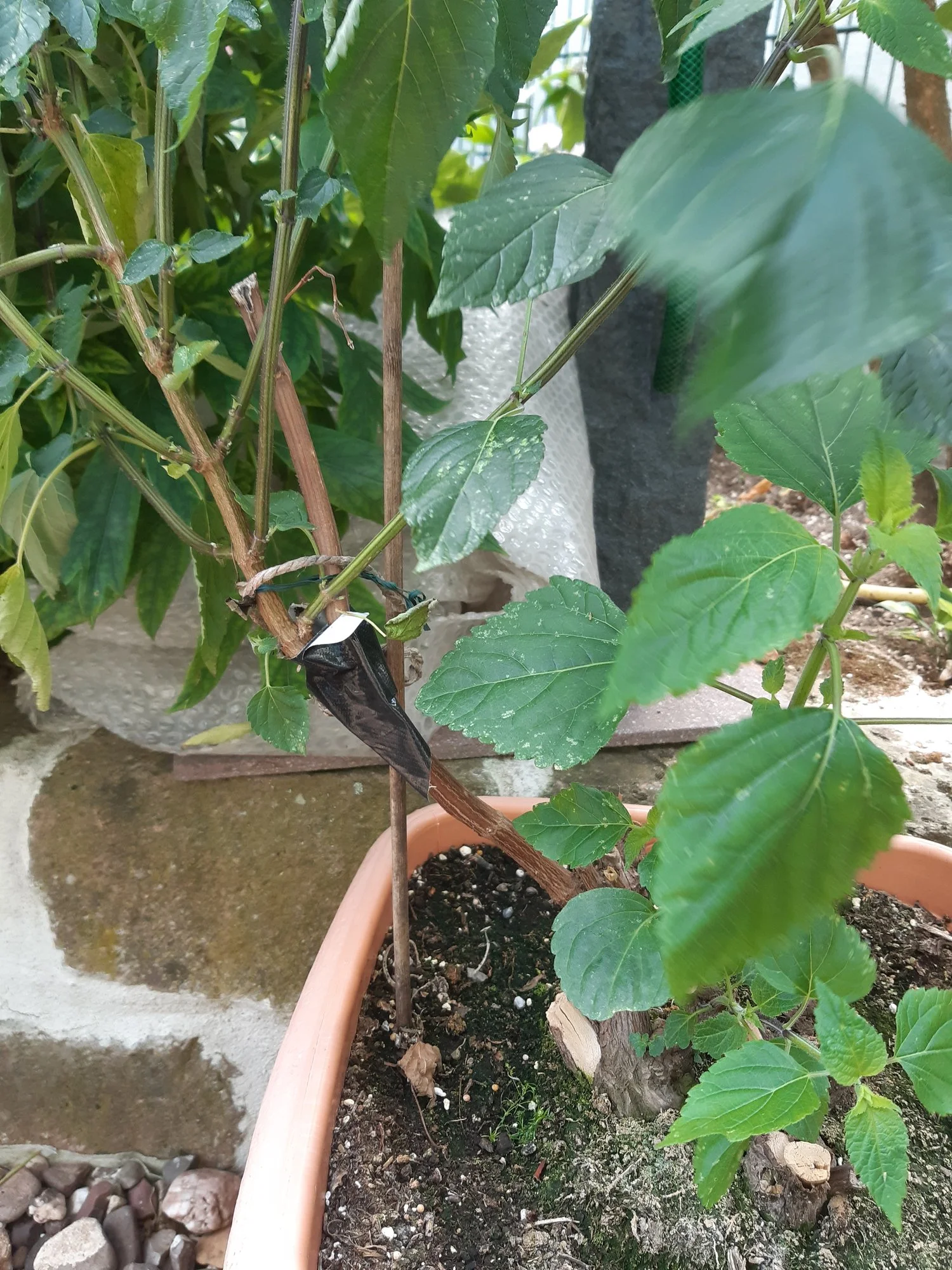 Habe nen Riesenpott, aaaaber: erstens kam er nicht in Fahrt (nach dem Winter) mit dem Wachstum, weiß nicht warum. Dann wuchs er toll, aber fast alle Triebe sind dann abgebrochen, weil Jemand so ungeschickt war. Jetzt hab ich einige Stecklinge gemacht, sehen auch nicht übel aus. Mal sehen, was dann wieder passiert. Und bei dem wenigen Grün was an der Ursprungspflanze übrig war, warte ich jetzt ganz arg auf die Blüte.