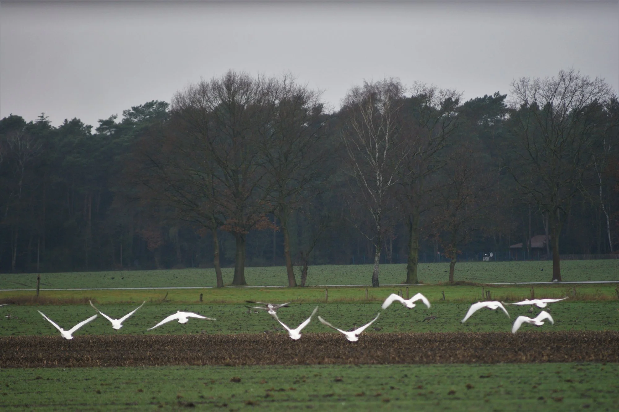 Und plötzlich waren zehn Schwäne da und nach 2 Stunden hoben die Schwäne wieder ab.